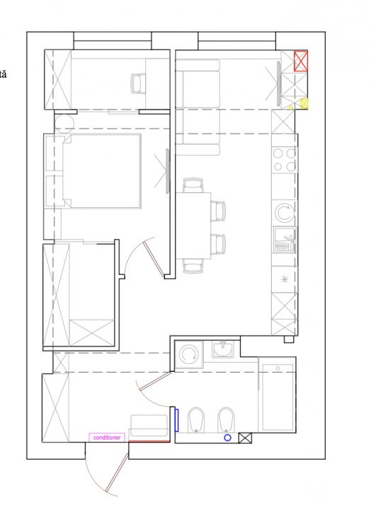 Imobilul se află la etajul 12 din 13, are 49 mp și dispune de antreu, bucătărie și dormitor.