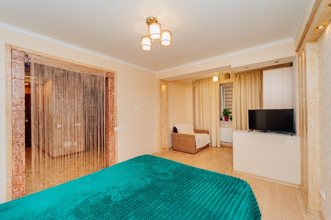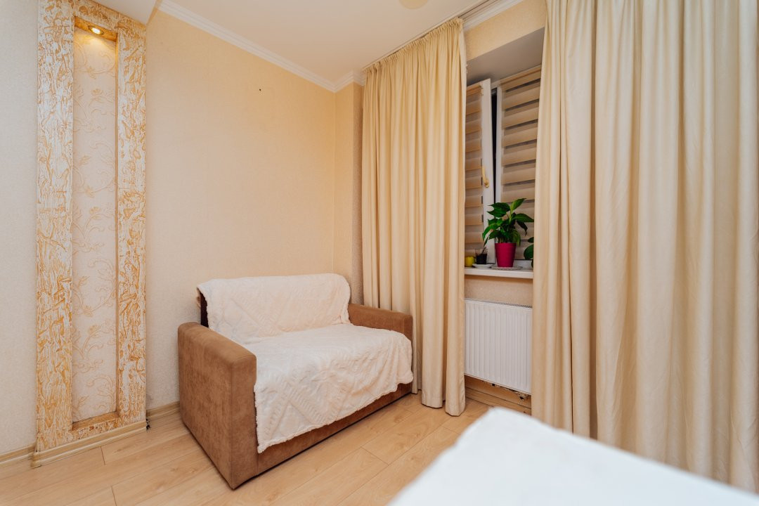 Apartamentul este amplasat la etajul 7 din 9 și oferă o priveliște frumoasă și liniște, fiind în același timp aproape de toate facilitățile urbane.