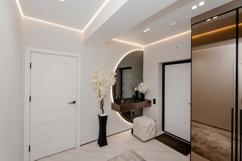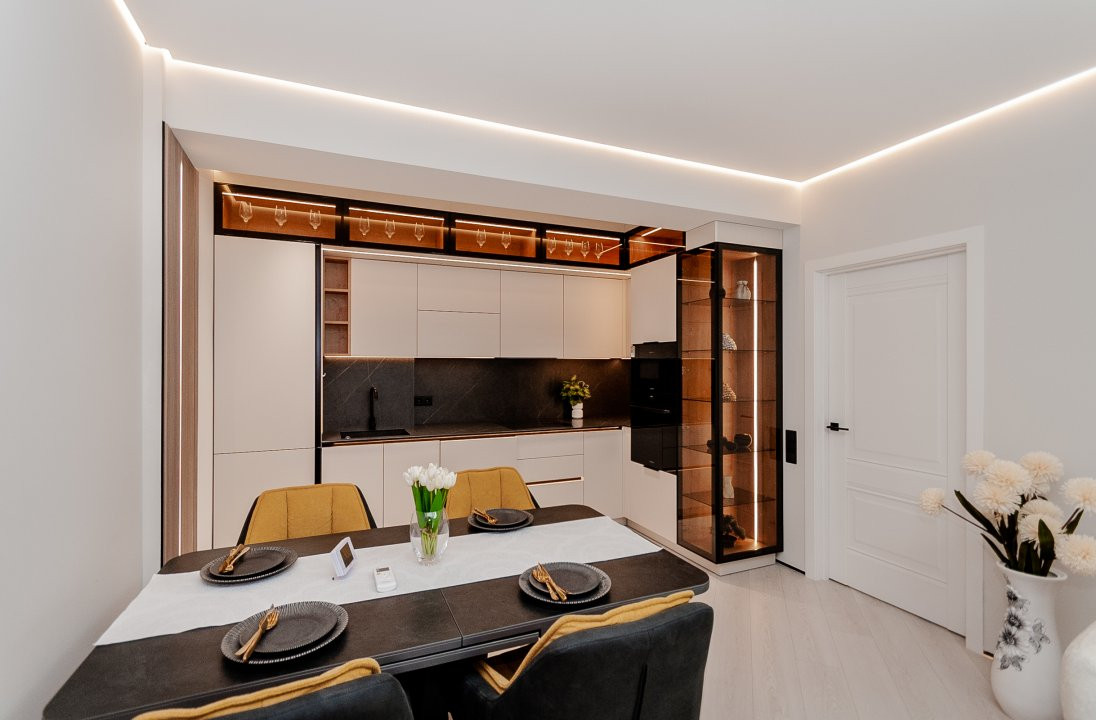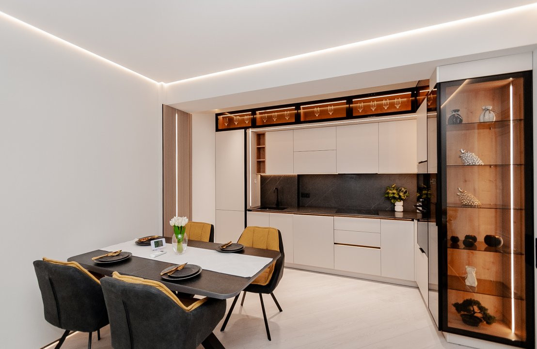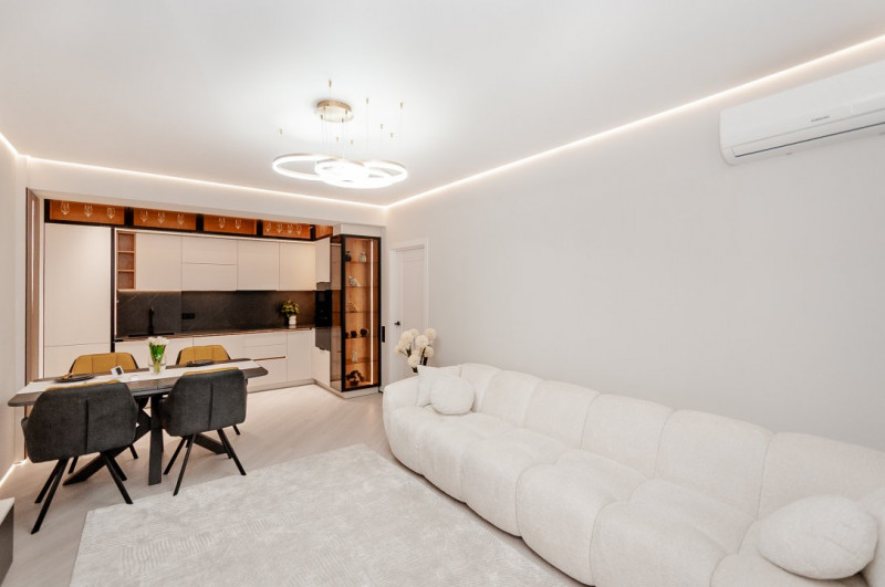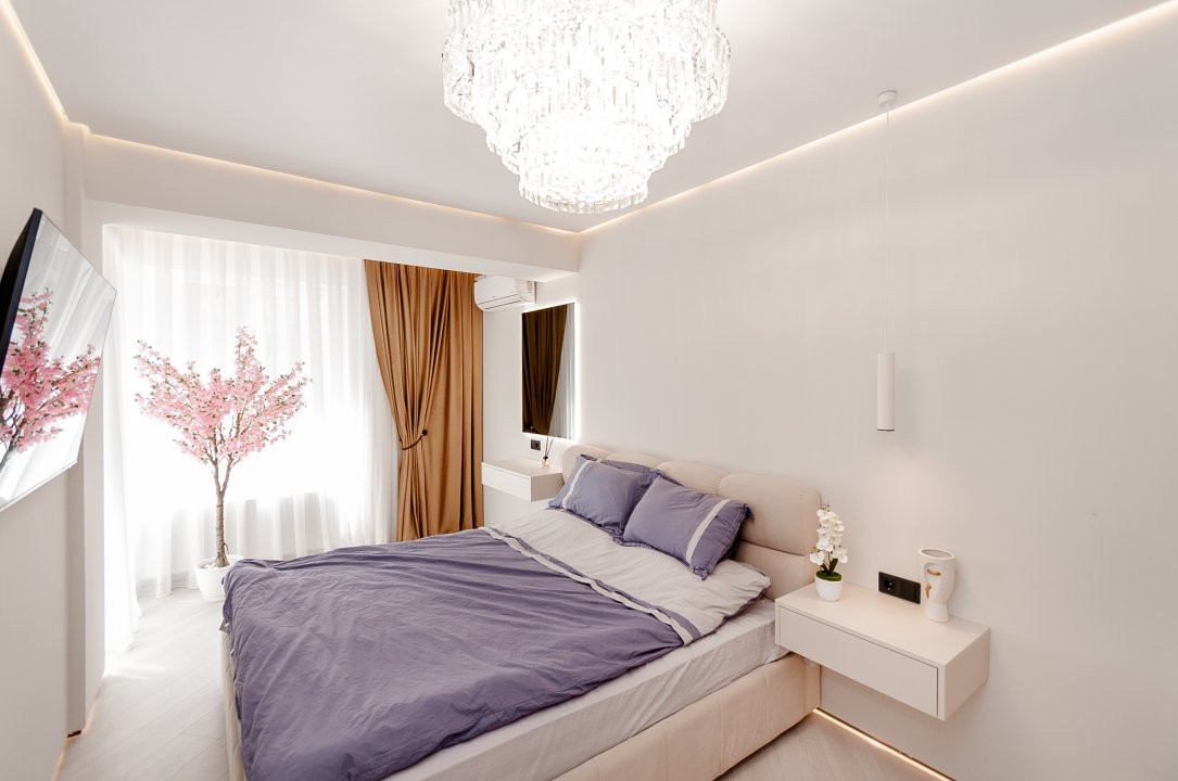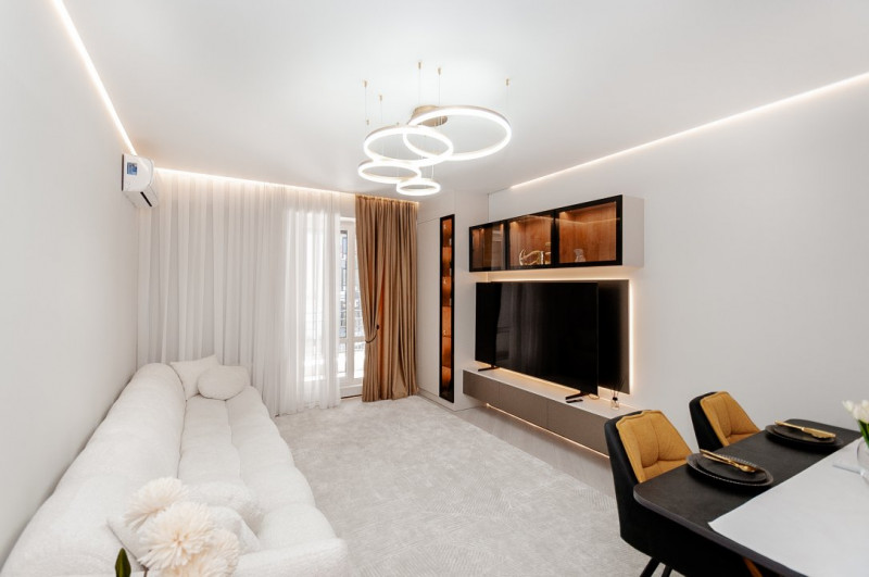 Cu geamuri mari ce aduc lumină naturală în fiecare colțișor, apartamentul impresionează prin finisaje impecabile și mobilier elegant, oferind un ambient plăcut și relaxant.