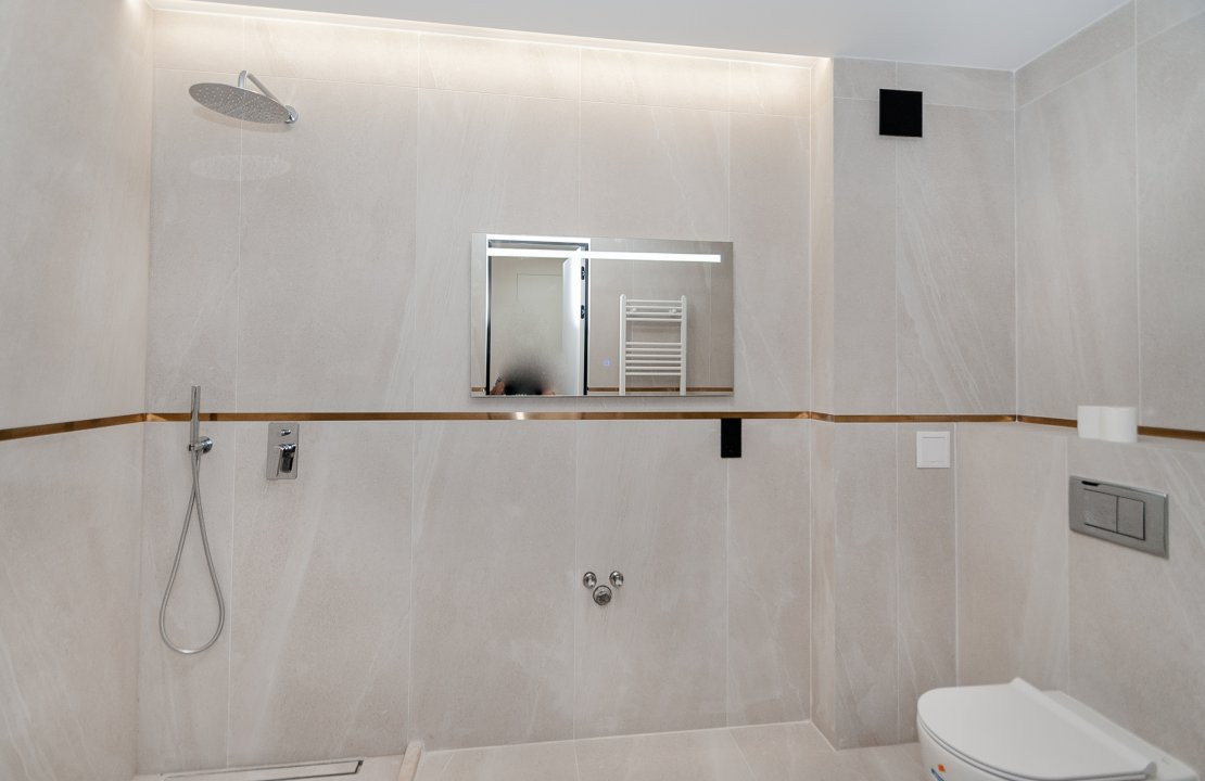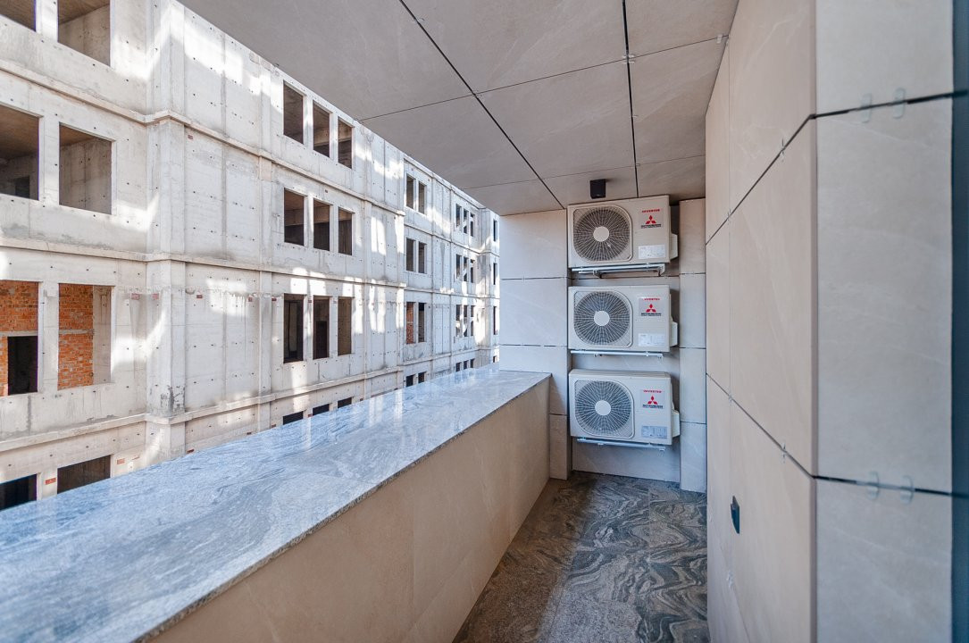 Locuința are suprafața de 80m2 și este compartimentată în: 2 camere, living, bucătărie, 2 balcoane, 2 blocuri sanitare și antreu.