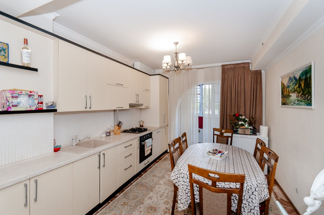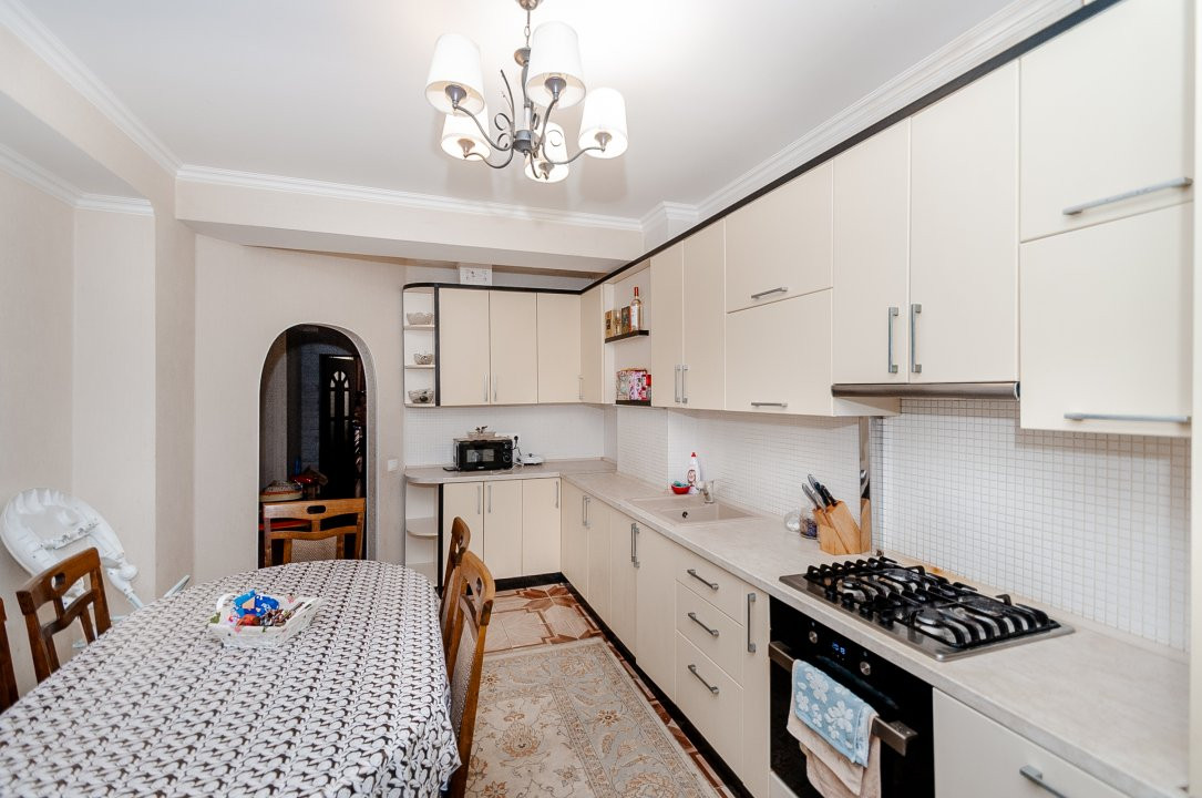 Bucătărie complet mobilată și utilată, cu electrocasnice moderne (plită, cuptor, hotă, frigider)