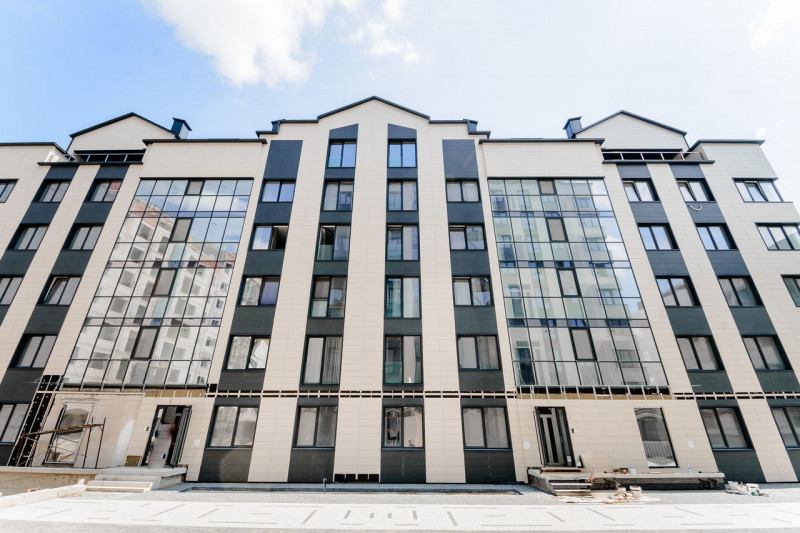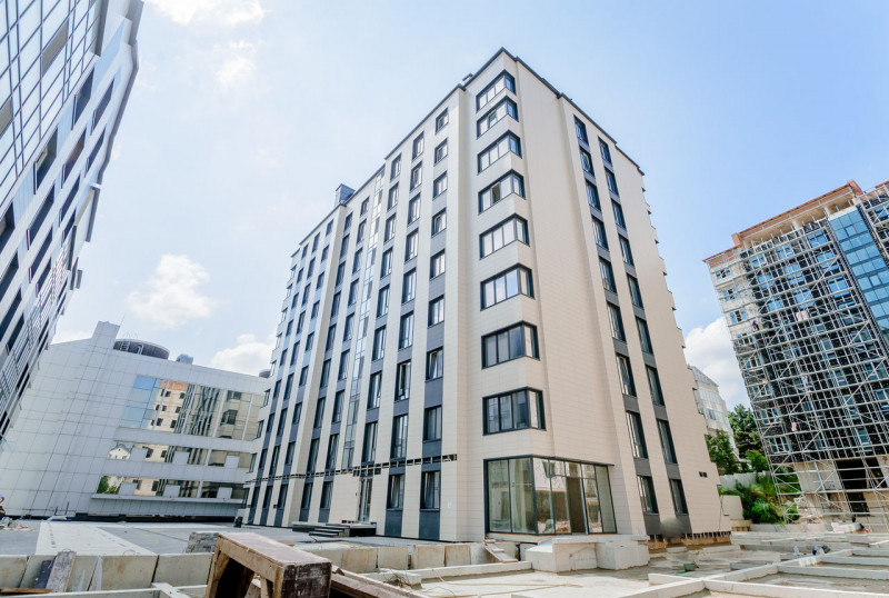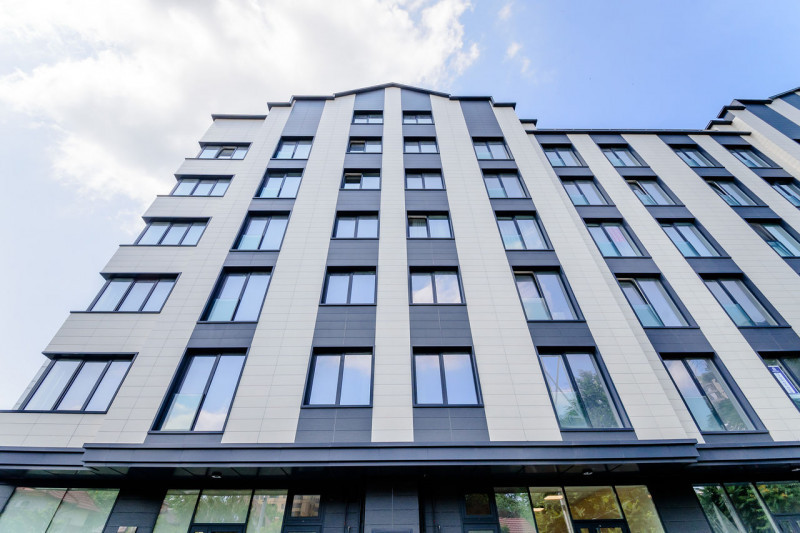 - Finisarea fațadei este dintr-un sistem combinat cu keramogranit și piatră naturală,