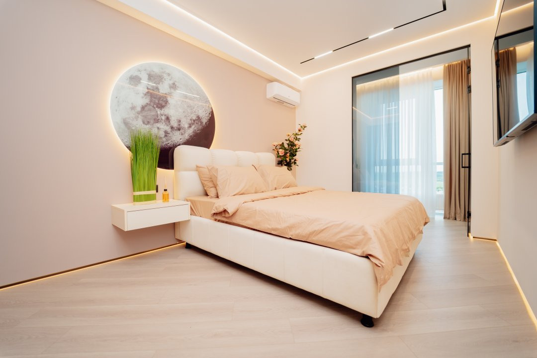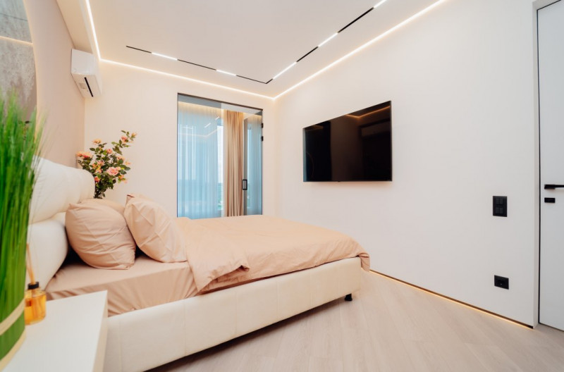 Spațiile sunt luminoase și bine compartimentate: două dormitoare elegante, un living generos și primitor, bucătărie complet utilată, garderobă spațioasă, balcon cu vedere și baie modernă.