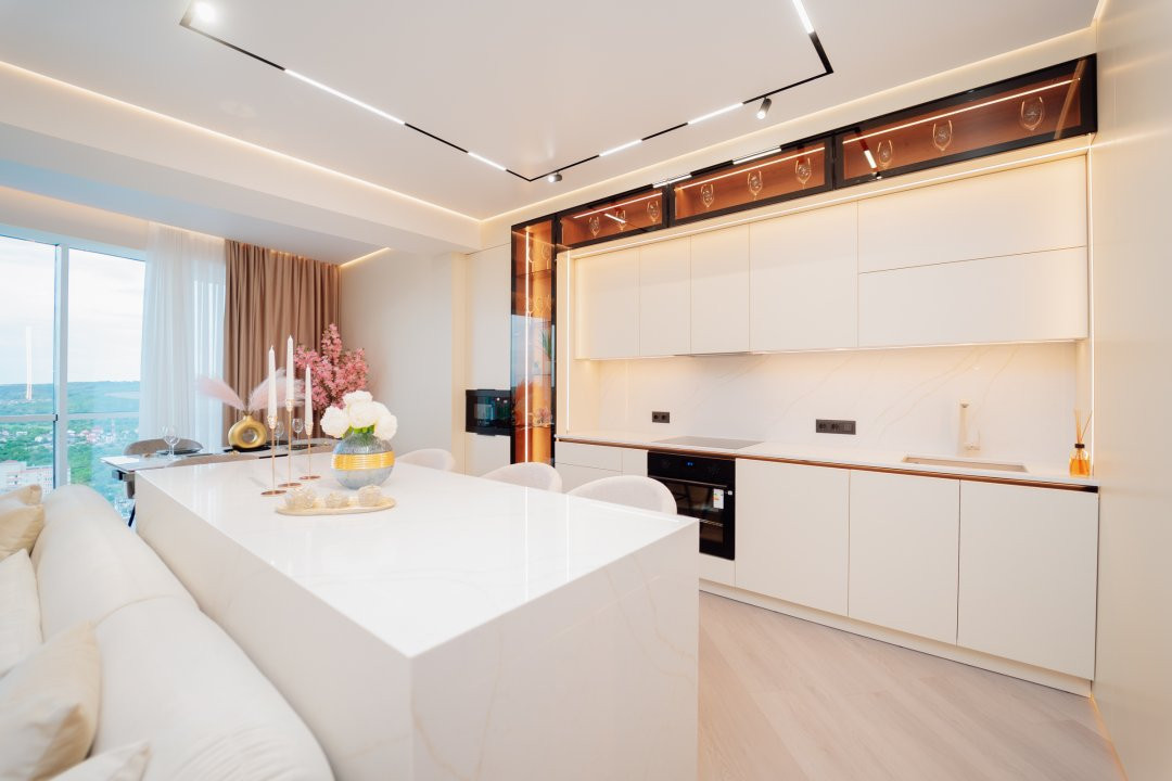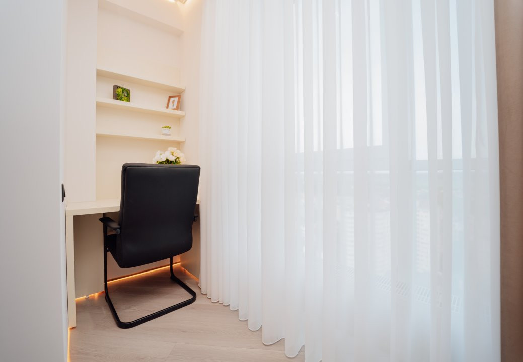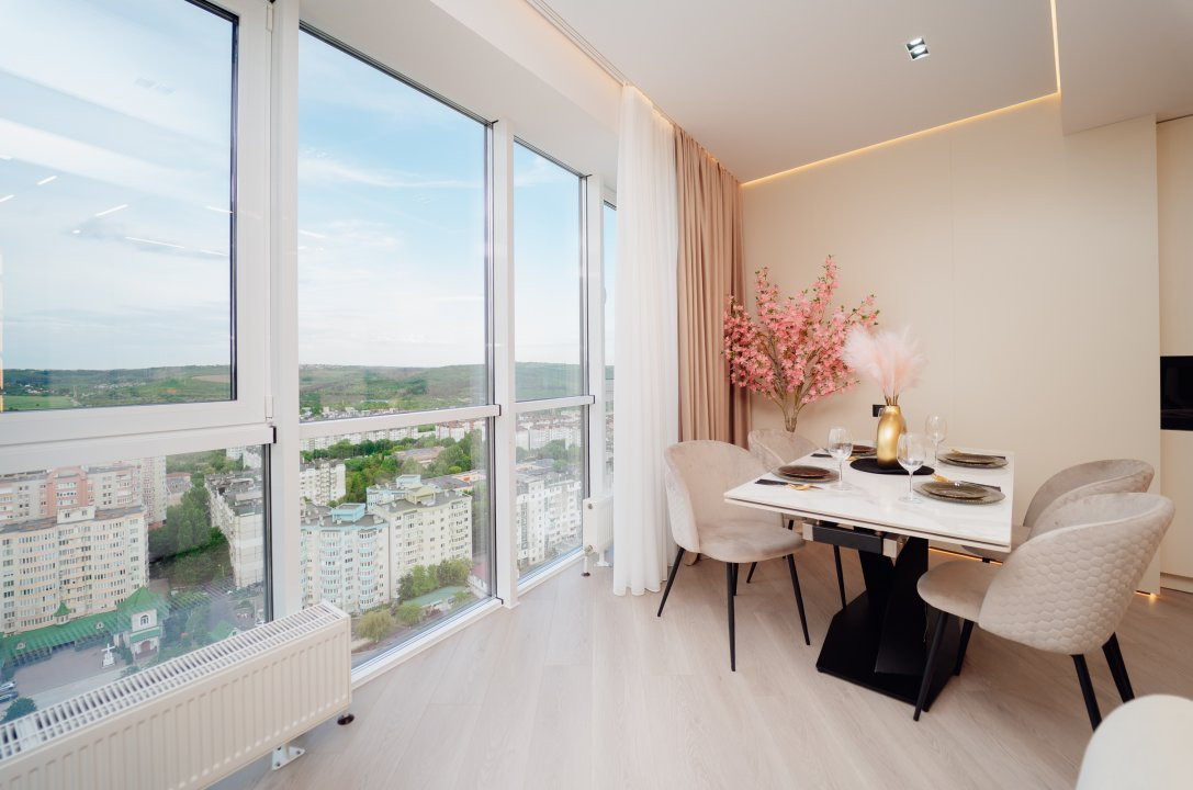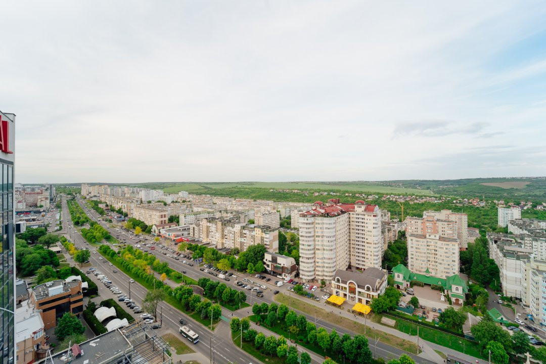 Cu o suprafață generoasă de 92 m², acest apartament amplasat la etajul 20 vă oferă o panoramă unică și impresionantă asupra bulevardului.