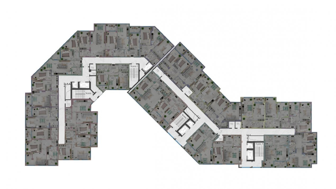 Complexul cuprinde 270 apartamente si 294 locuri de parcare. La fel sunt spatii comerciale la parter, si spatii de birou la etajul secund.