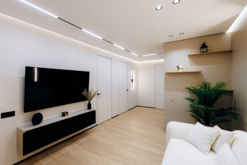 Designul interior al apartamentului este rafinat, cu finisaje de calitate superioară și un aspect luminos care creează o atmosferă primitoare.