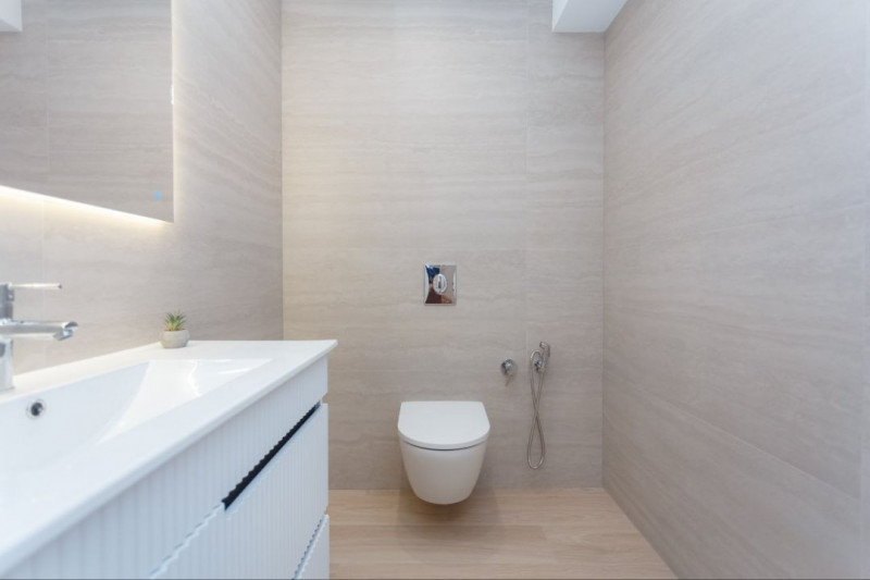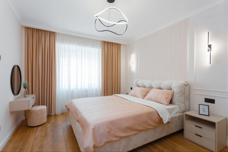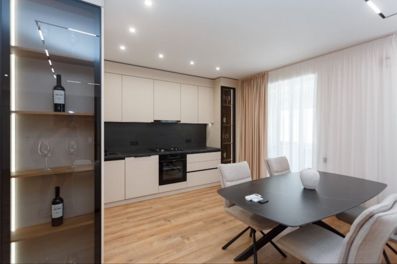 Apartamentul beneficiază de reparație modernă, cu finisaje atent alese și un design interior elegant.