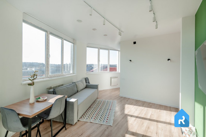 Se află la etajul 13 din 13, având o priveliște frumoasă spre oraș.