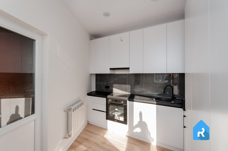 Suprafața apartamentului este de 71 mp, care include un dormitor și zona de living mare, comasat cu bucătaria, bloc sanitar.