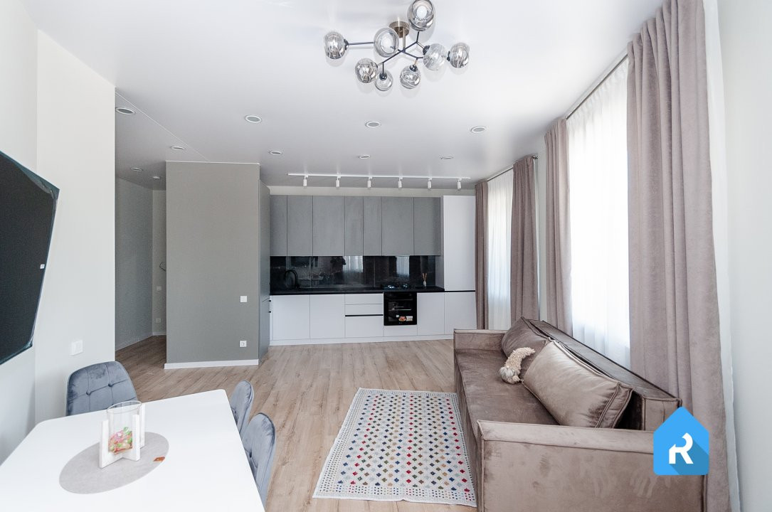 Suprafața apartamentului este de 71 mp, care include 2 dormitoare și zona de living mare, comasat cu bucătaria, bloc sanitar și balcon spațios.