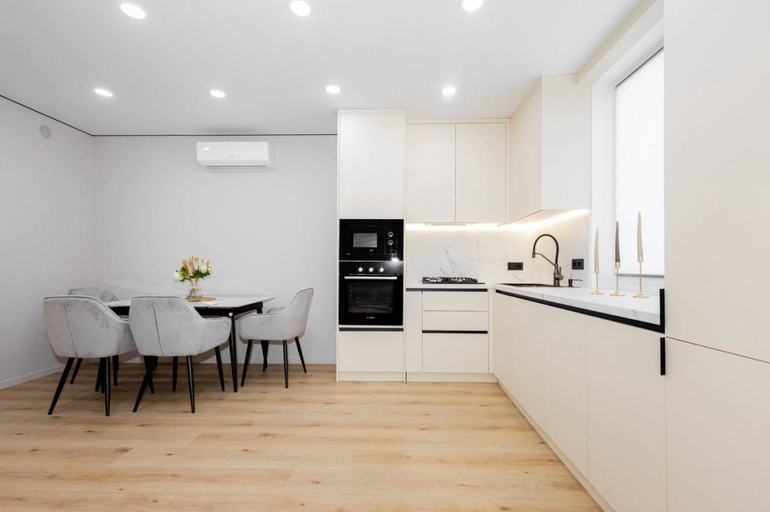 Apartamentul este finisat cu reparație euro de calitate, dotat cu: