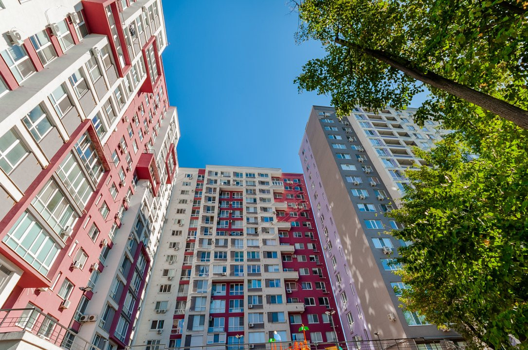Bloc locativ nou, cu lifturi silențioase și spații comune bine întreținute.