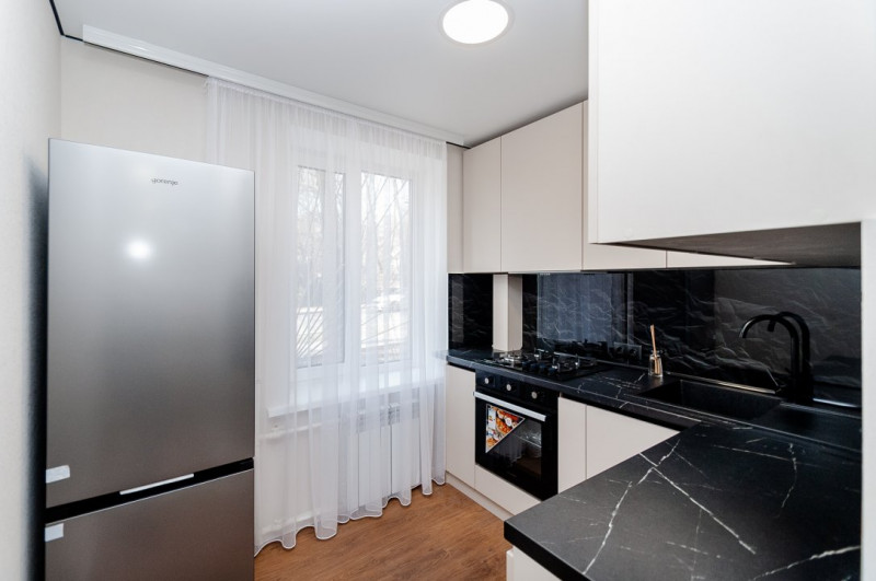 Apartamentul dispune de 2 camere + living, recent renovat cu reparație euro, finisaje moderne și un design interior plăcut.