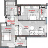 Apartamentul se extinde pe o suprafață de 59,52 mp și este compartimentat în 2 dormitoare separate, bucătărie, antreu, bloc sanitar, 2 balcoane.