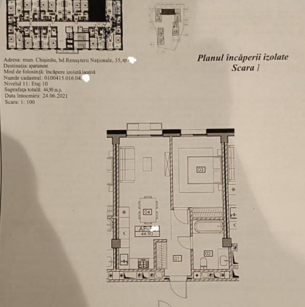 Compartimentare: antreu, bucătărie comasată cu living, dormitor, bloc sanitar.