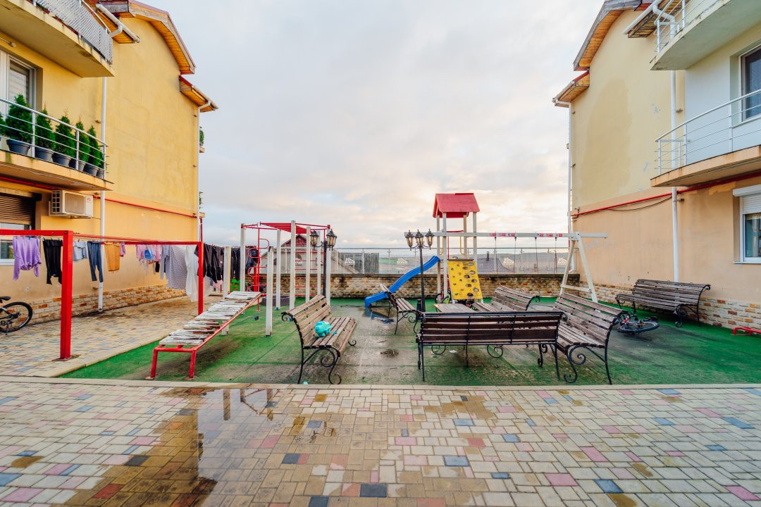 Teren îngrădit, cu o atmosferă liniștită și sigură