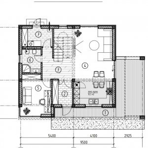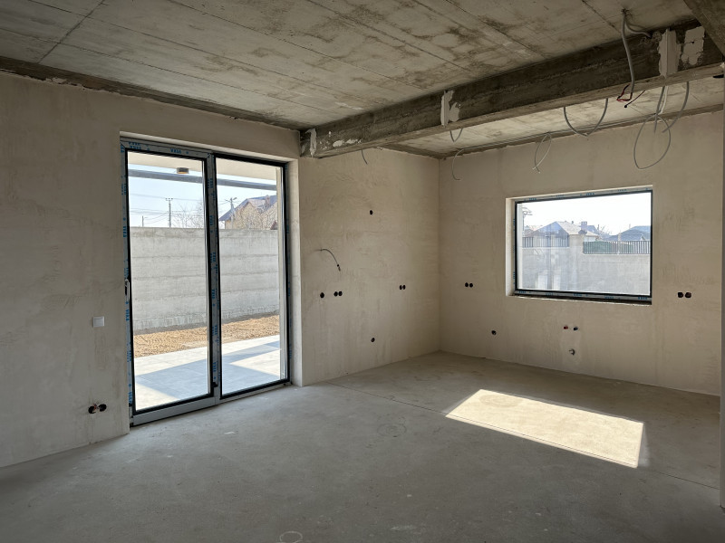 I nivel - tambur, bucătărie cu living, cabinet, grup sanitar, încăpere tehnică, terasă de 23 mp.