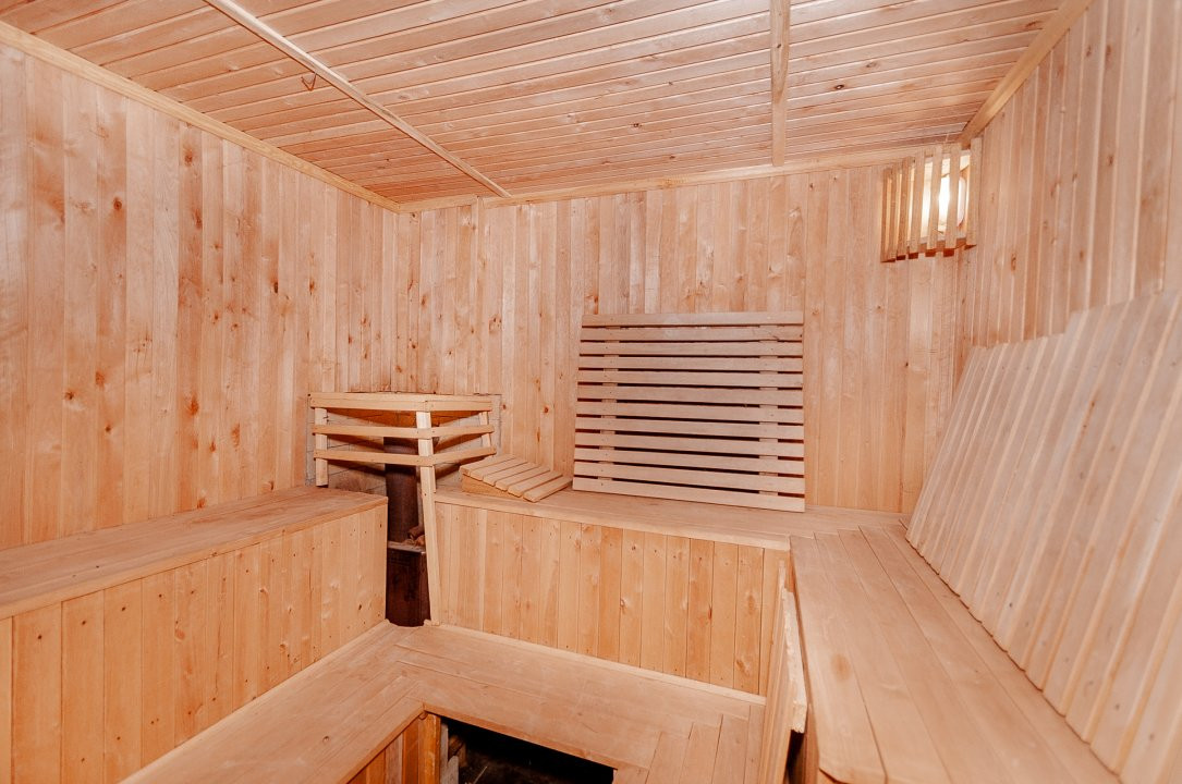 Saună, șemineu, birou, bucătărie complet amenajată;