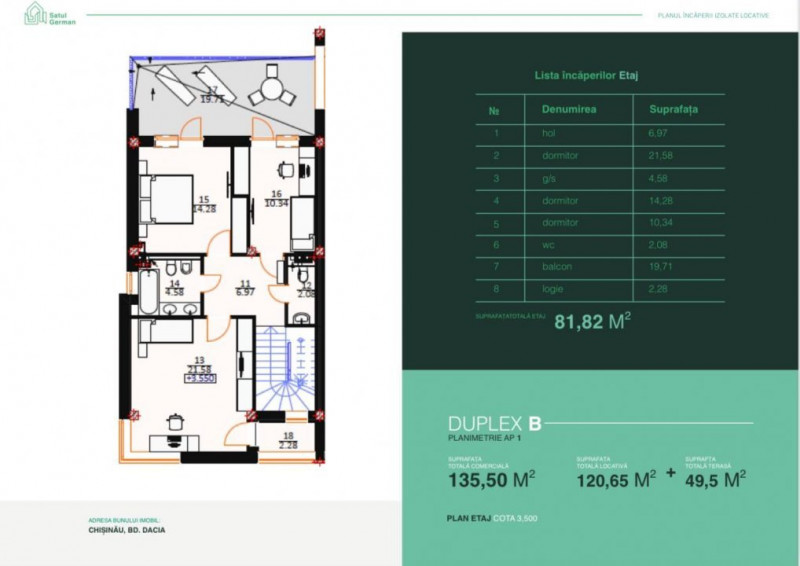 Se vinde un duplex deosebit în complexul Satul German, amplasat în sectorul Botanica, pe bd. Dacia – o zonă liniștită, dar cu acces rapid către centrul orașului.