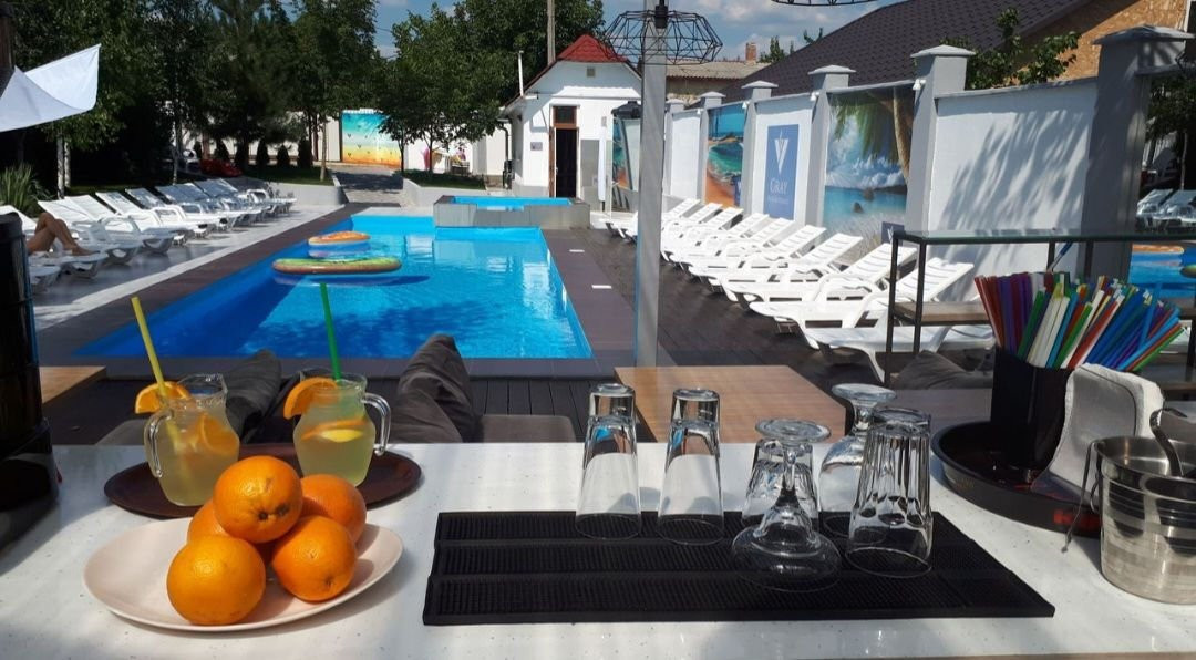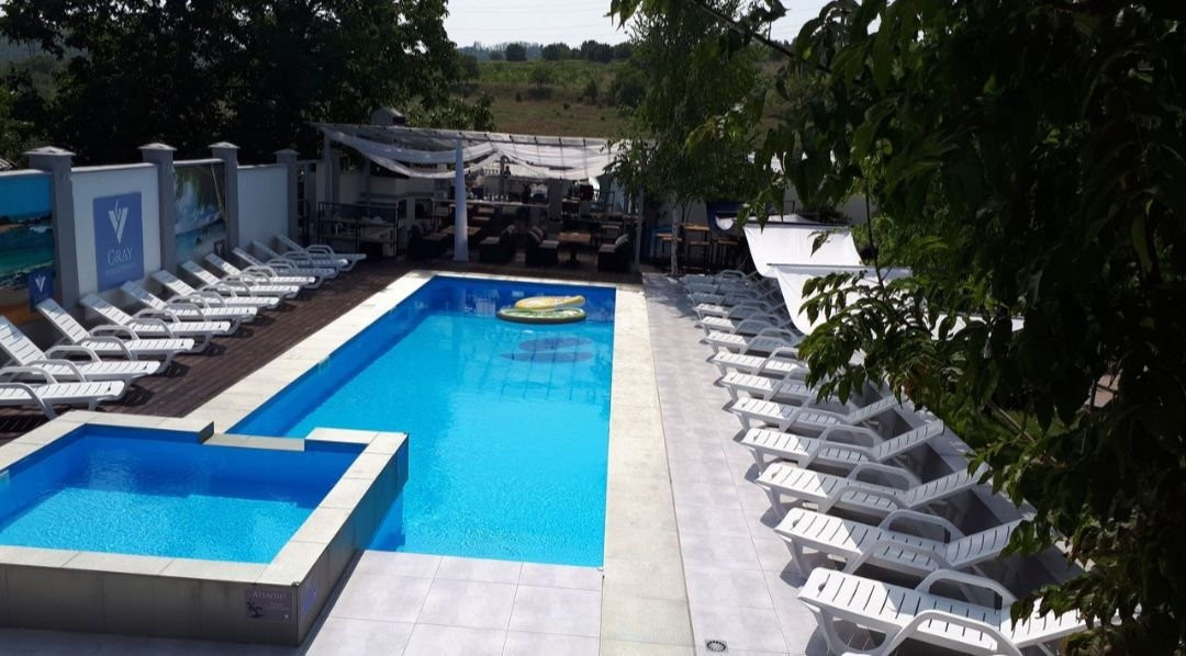 Piscină exterioară: Cu dimensiuni de 14 m x 5 m și un volum de aproximativ 160 m³, ideală pentru relaxare și distracție.