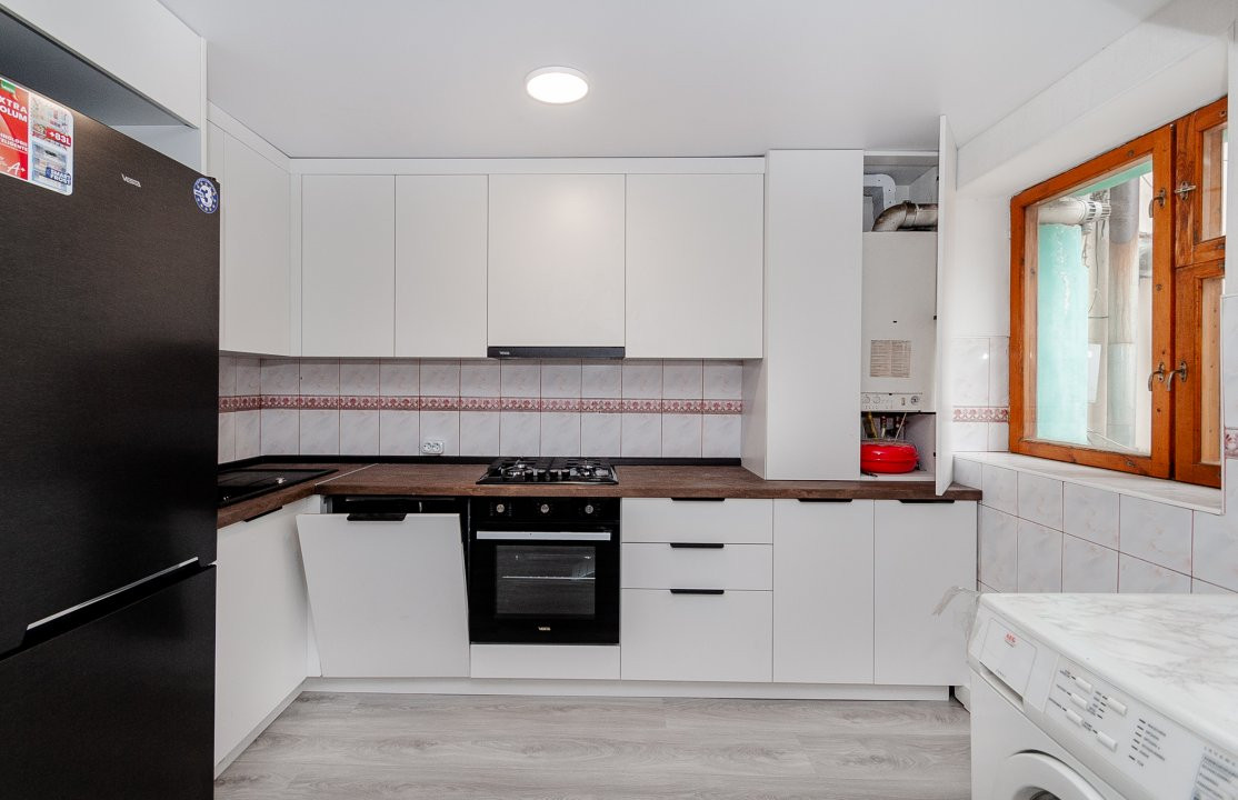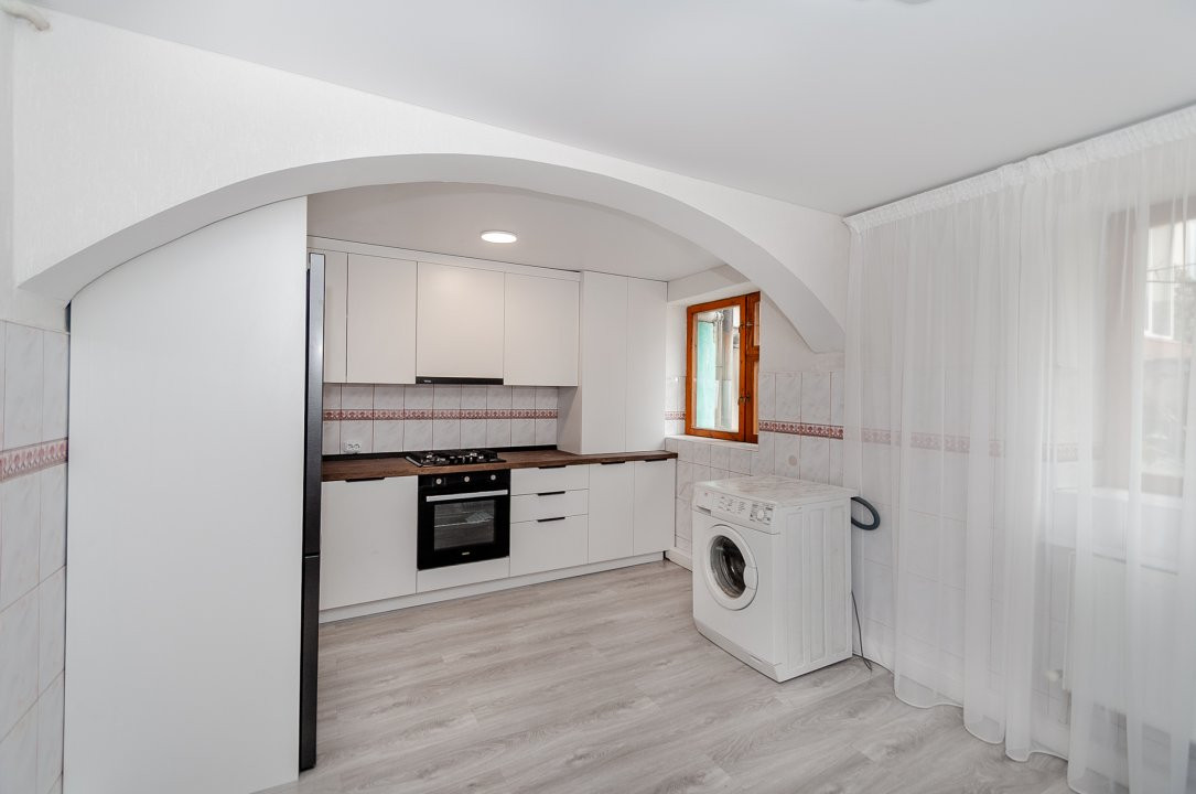 bucătărie dotată cu tehnică modernă, ideală pentru momente relaxante în familie;