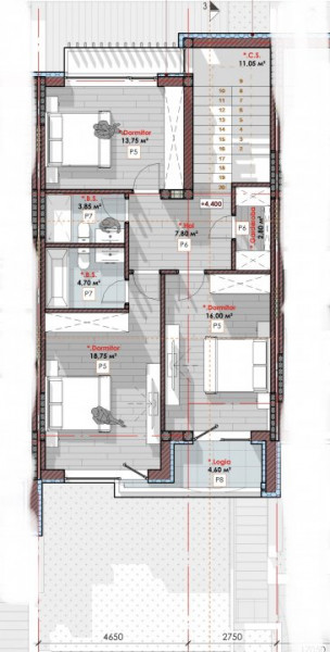 La nivelul al doilea, sunt trei dormitoare confortabile, 2 balcoane, 2 blocuri sanitare și o garderobă.