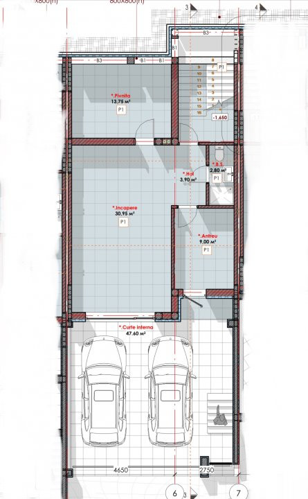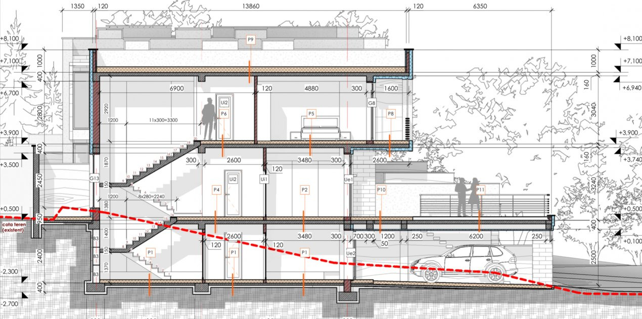 La nivelul 0 - găsim un antreu, un beci, o zonă de odihnă, un garaj pentru 2-4 mașini și un bloc sanitar;