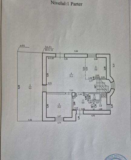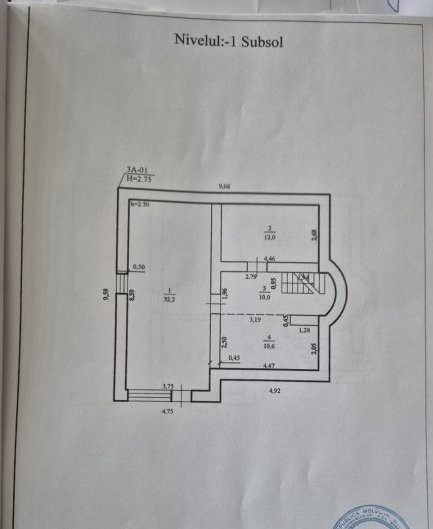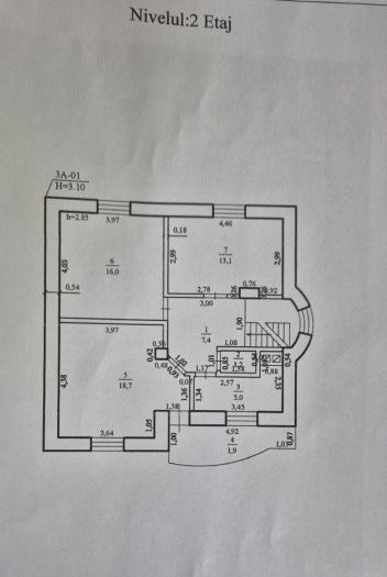 Imobilul se desfășoară pe două nivele, având o suprafață totală de 200 mp și un teren de 3 ari.