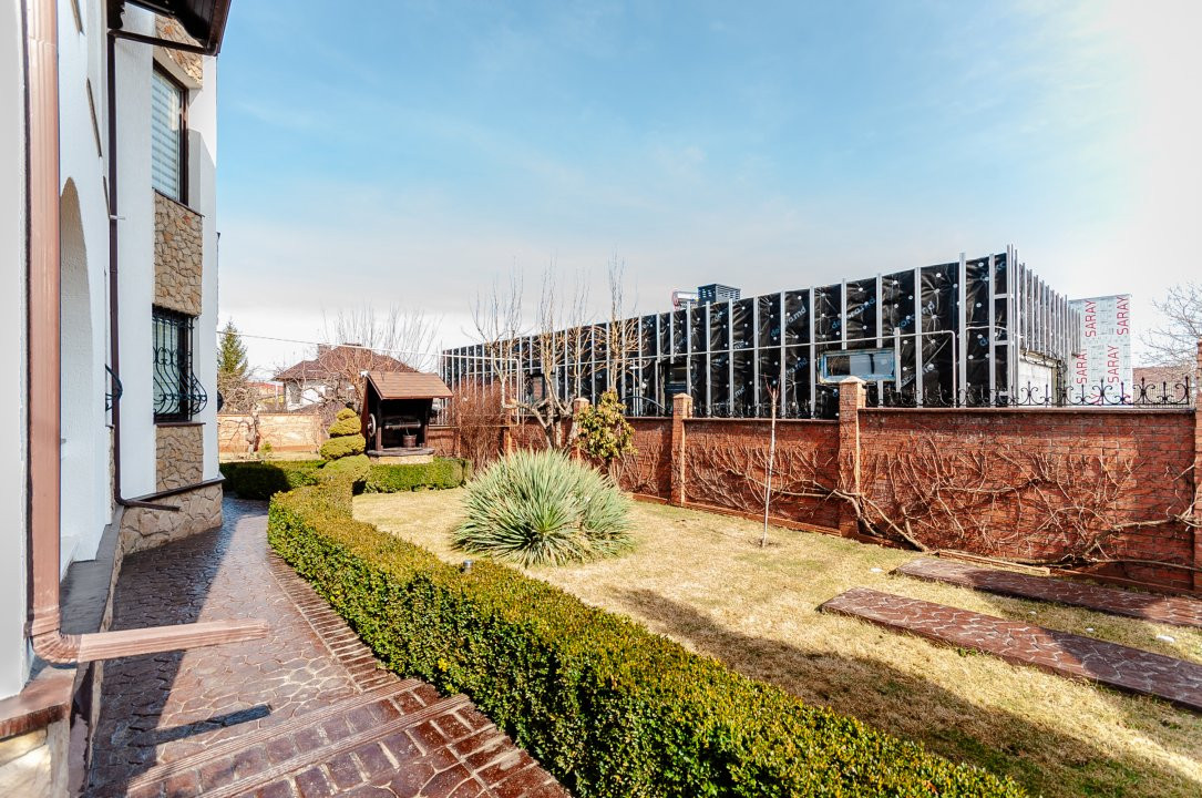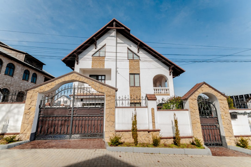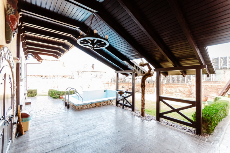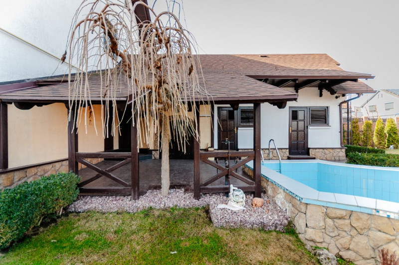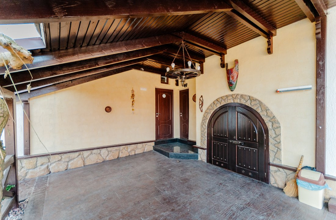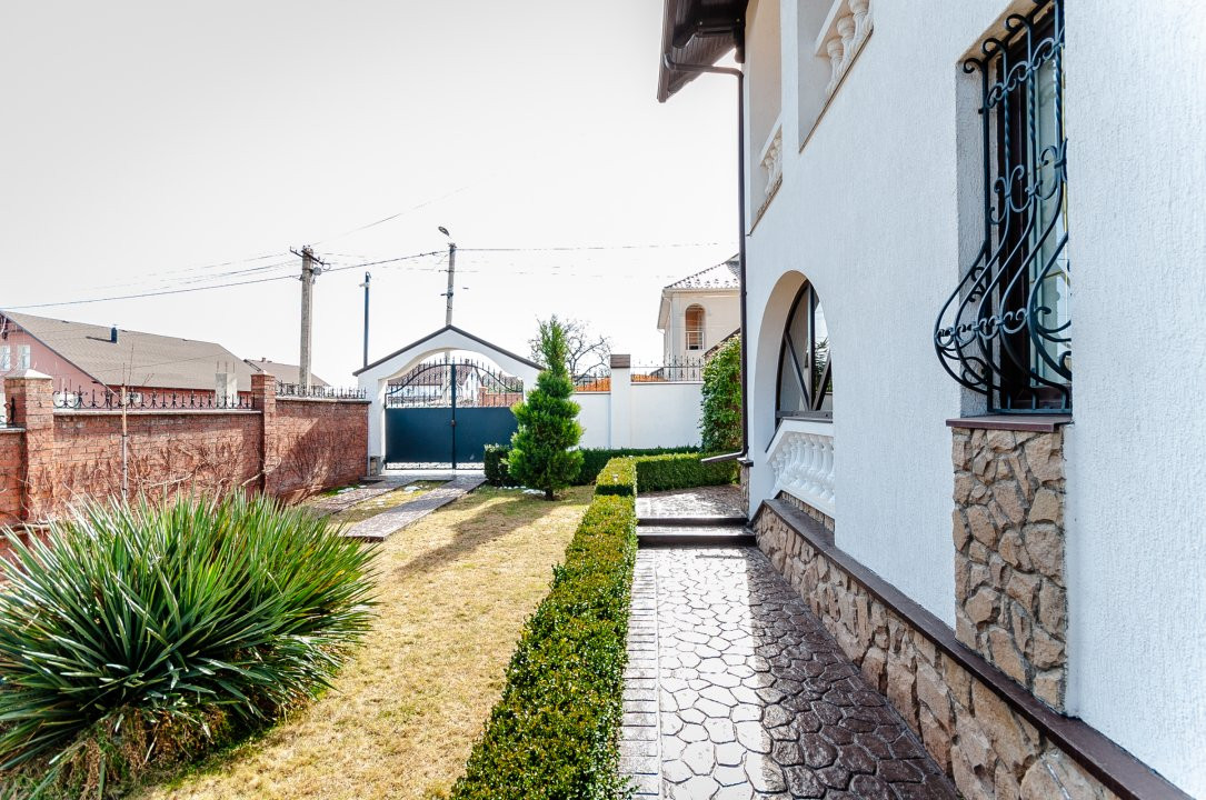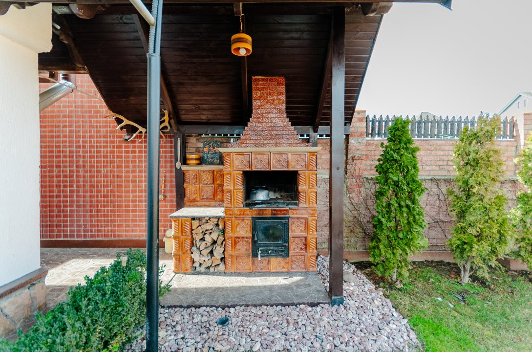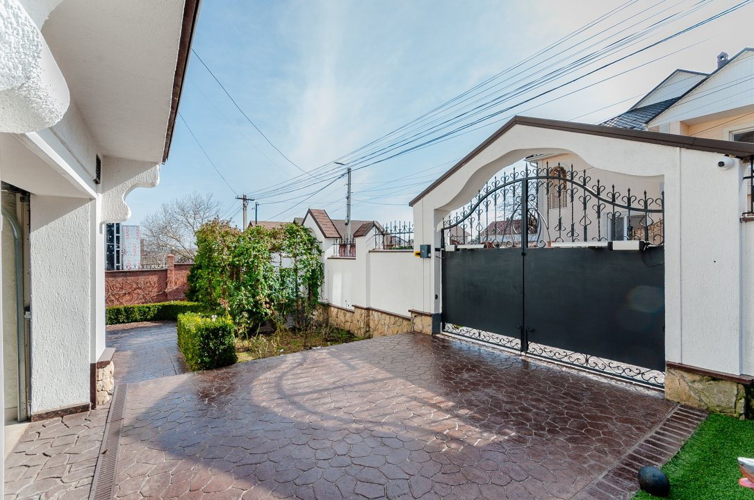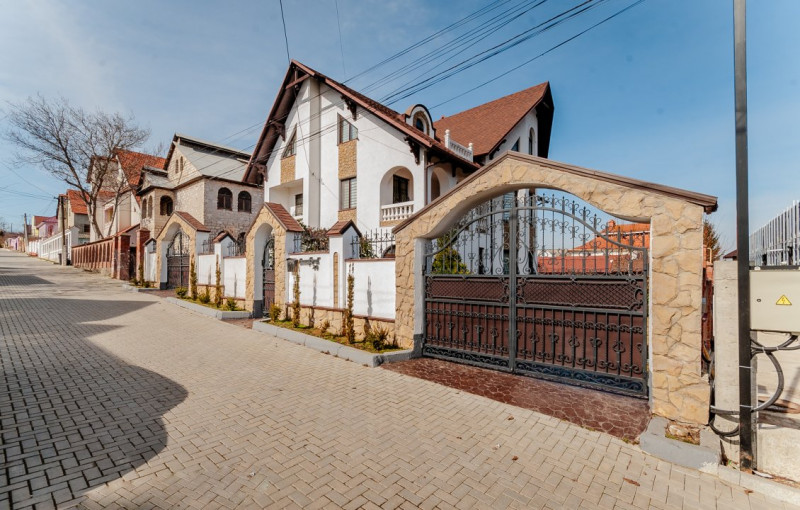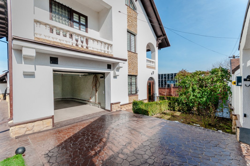 Compartimentare: antreu, living, bucătărie, 2 blocuri sanitare, 4 dormitoare separate, beci, saună, terasă, zonă barbecue, garaj pentru 2 mașini, cazangerie.
