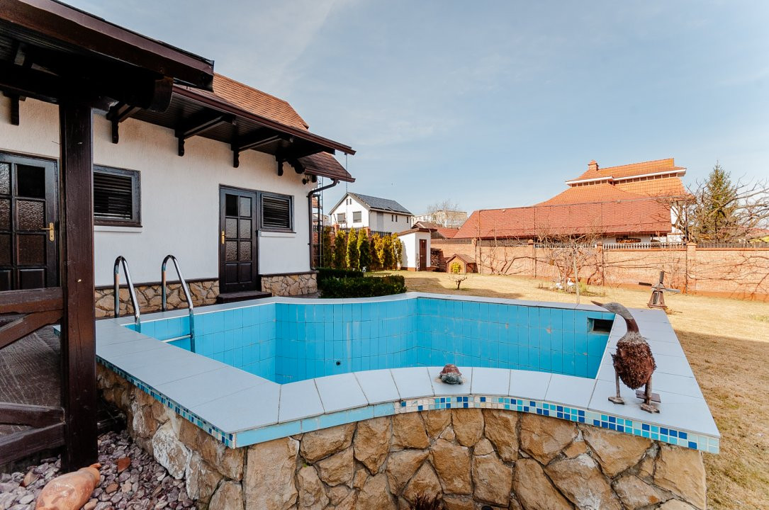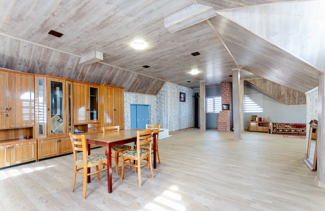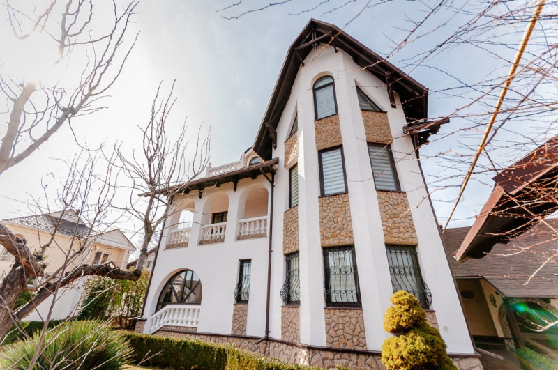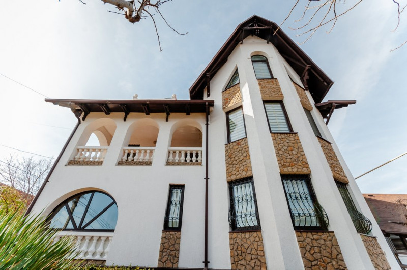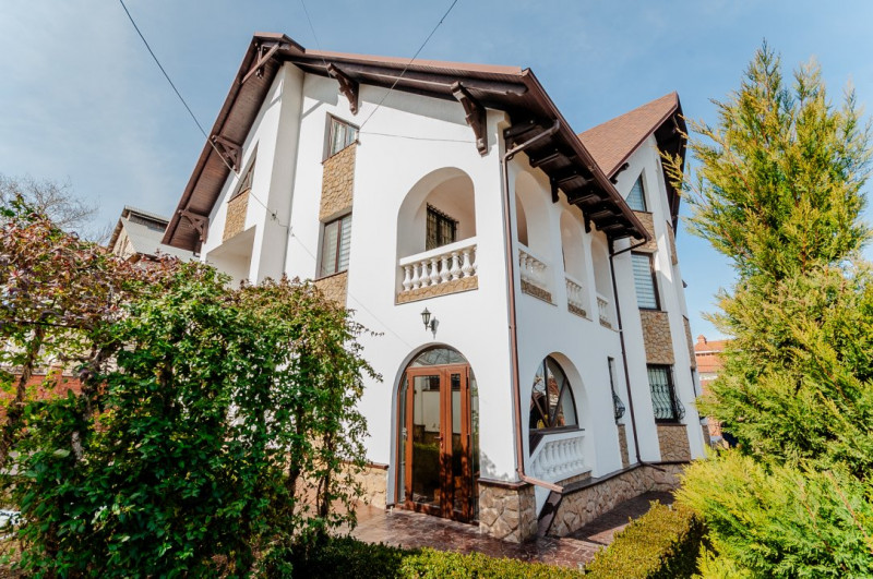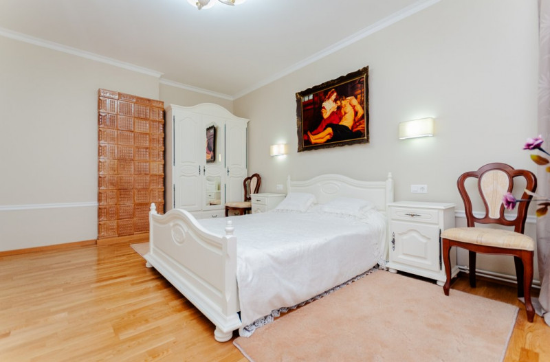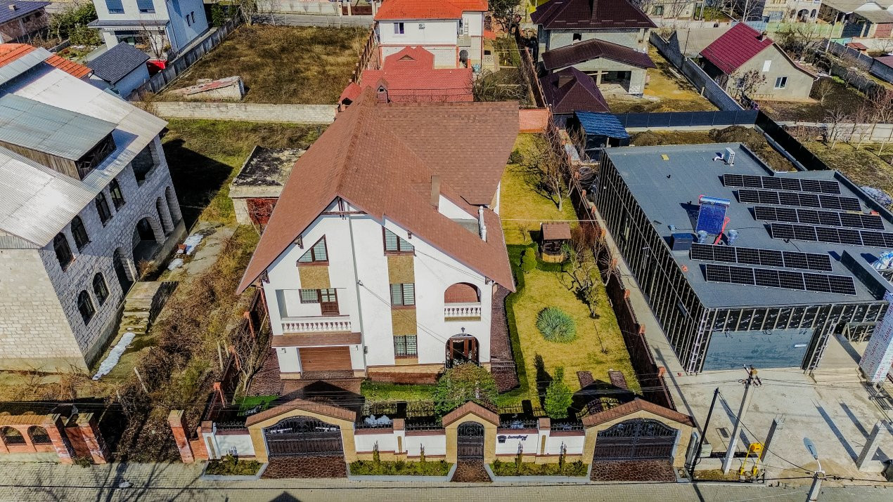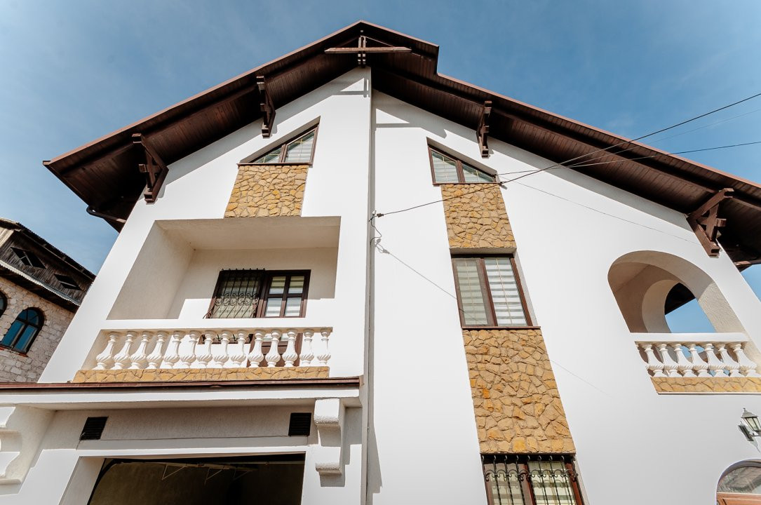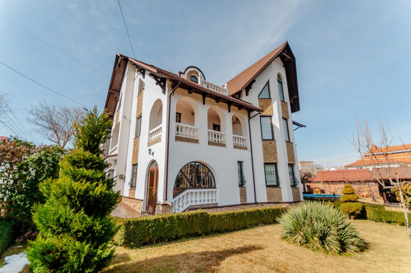 Compartimentare: antreu, living, bucătărie, 2 blocuri sanitare, 4 dormitoare separate, beci, saună, terasă, zonă barbecue, garaj pentru 2 mașini, cazangerie.