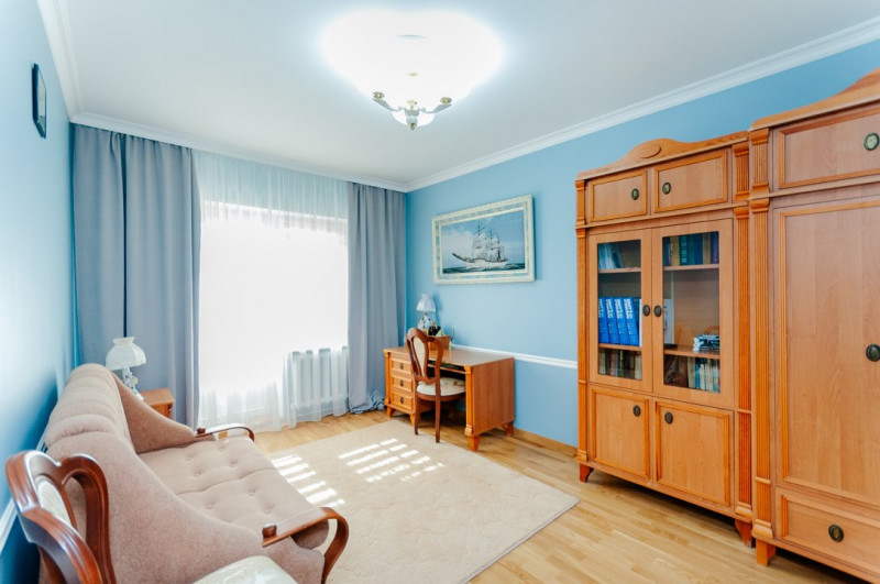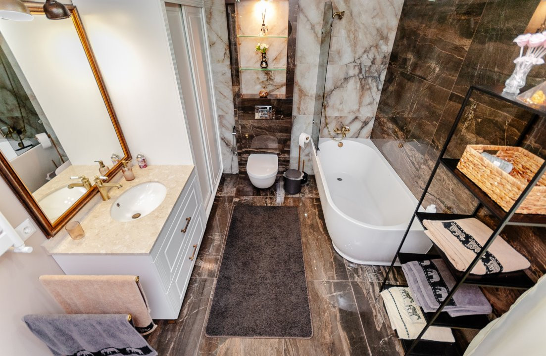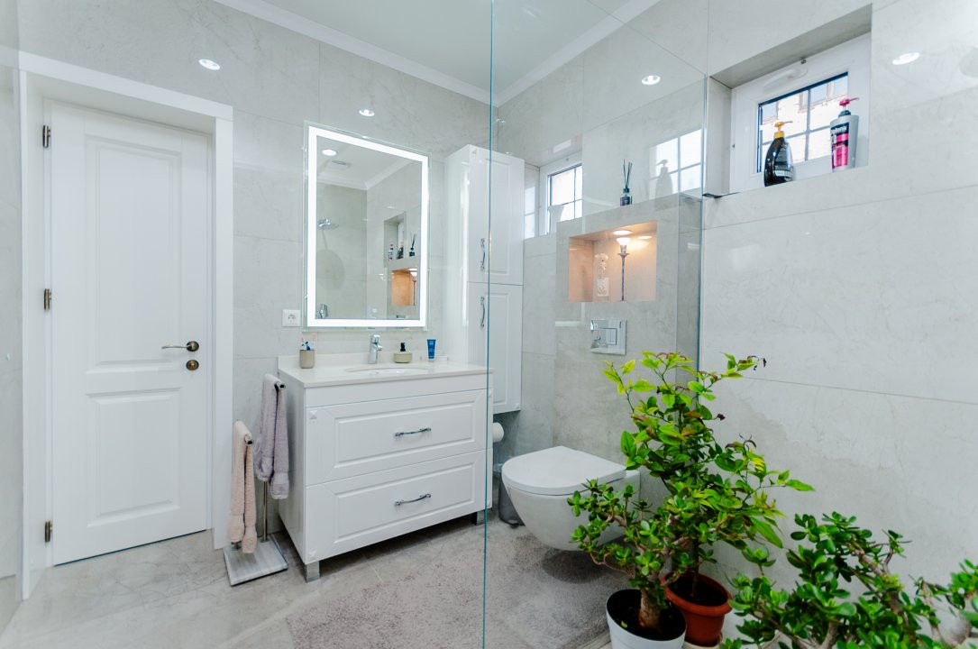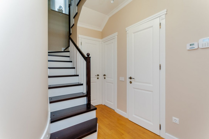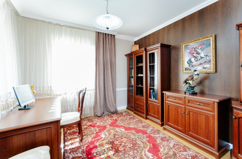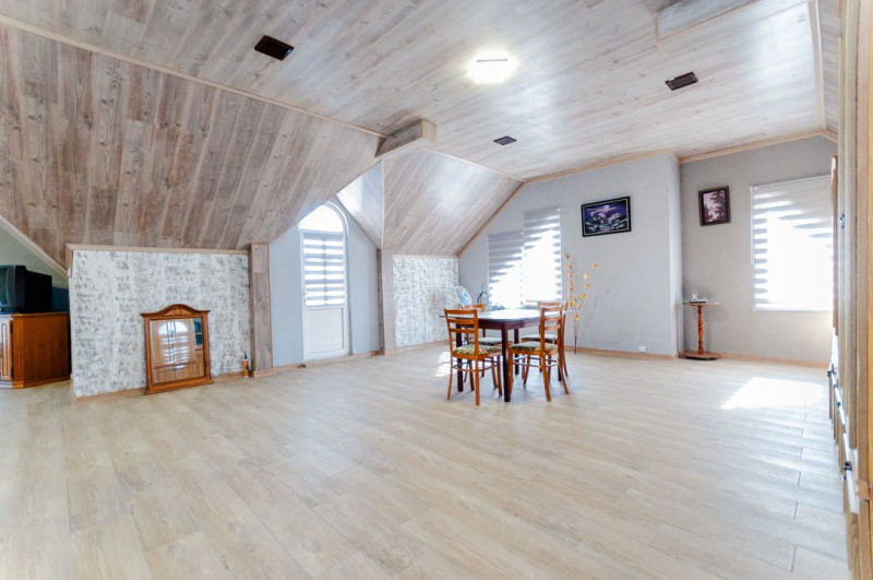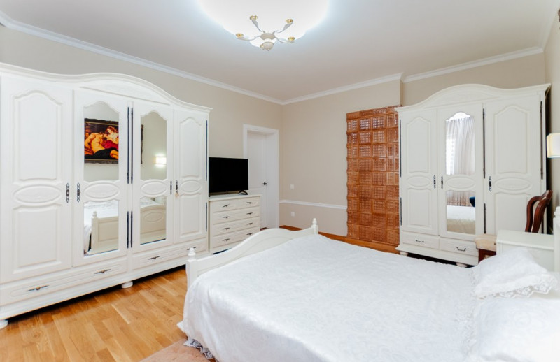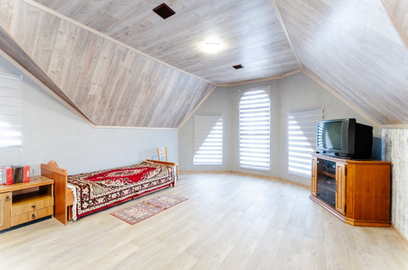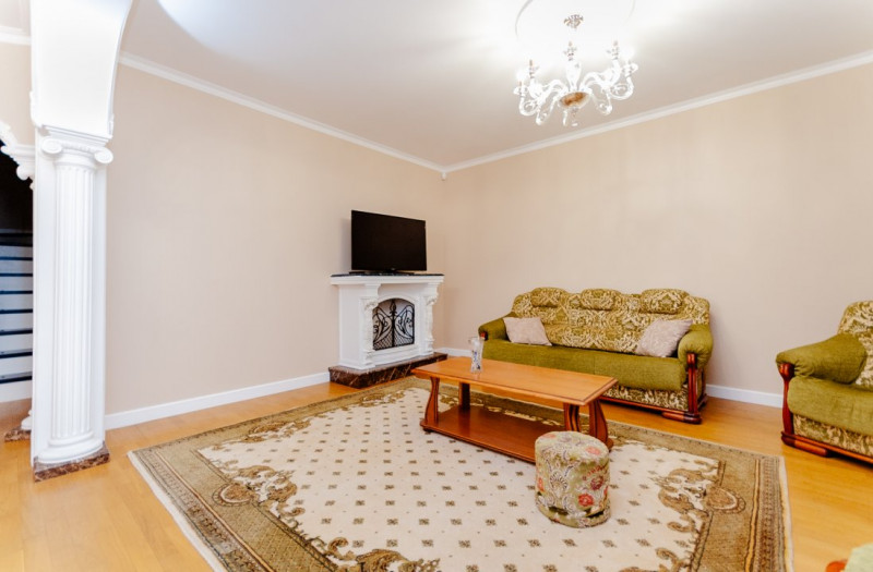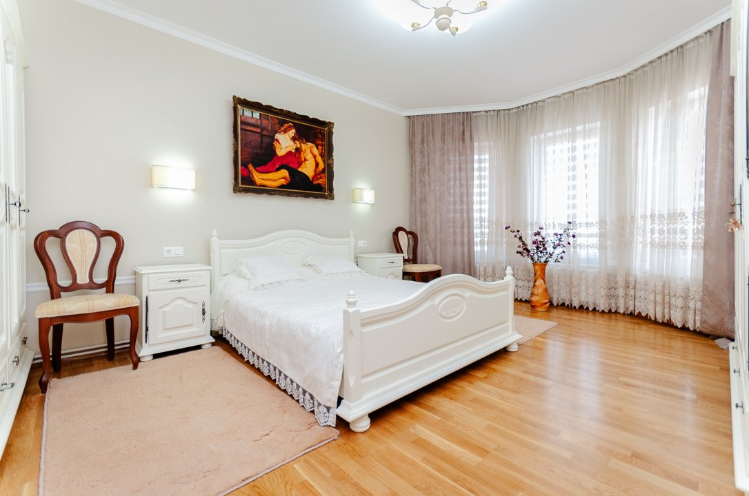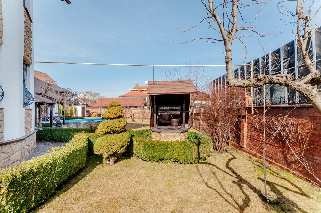 Compartimentare: antreu, living, bucătărie, 2 blocuri sanitare, 4 dormitoare separate, beci, saună, terasă, zonă barbecue, garaj pentru 2 mașini, cazangerie.