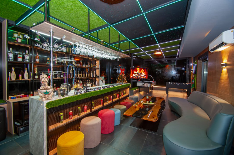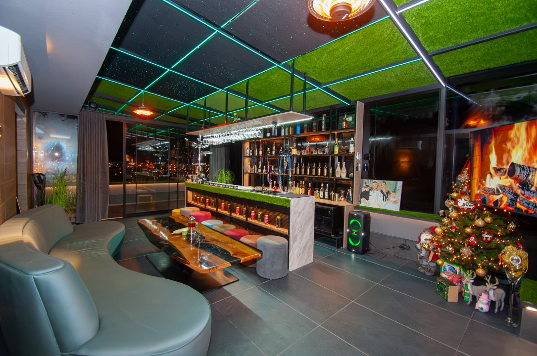 Etajul 3 surprinde cu un bar și o terasă închisă, balcon și un alt dormitor.