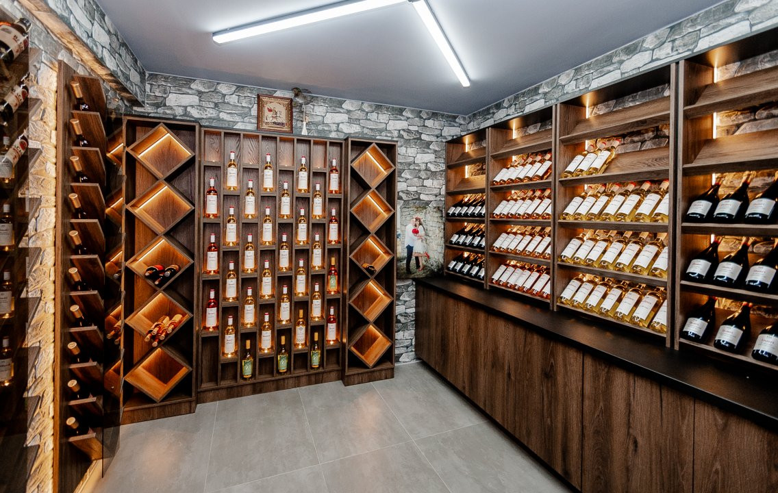 Parterul include un garaj pentru 4 mașini, beci, debara, cameră tehnică, safeu și garderobă.