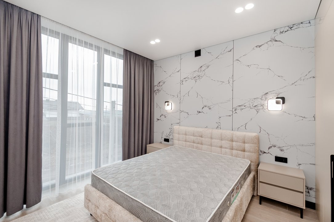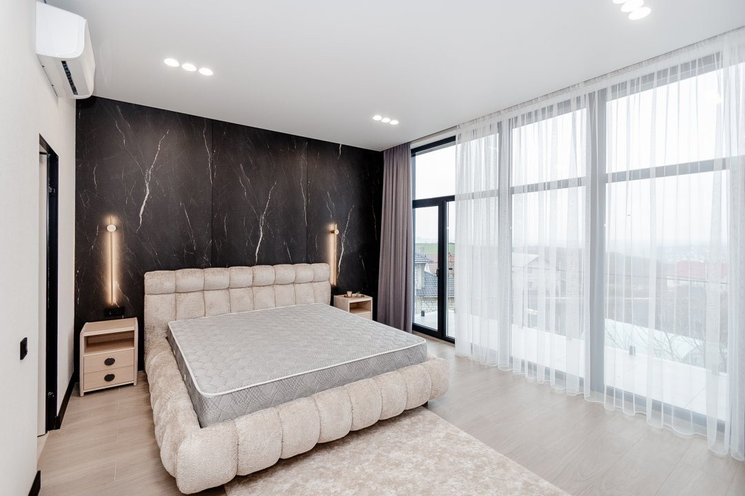 Casa beneficiază de reparație euro, fiecare încăpere fiind decorată cu atenție la detalii și materiale premium. Confortul este asigurat prin încălzire autonomă, pardoseală caldă, condiționer, iar proprietatea se vinde complet mobilată și echipată, gata pentru a fi locuită imediat.