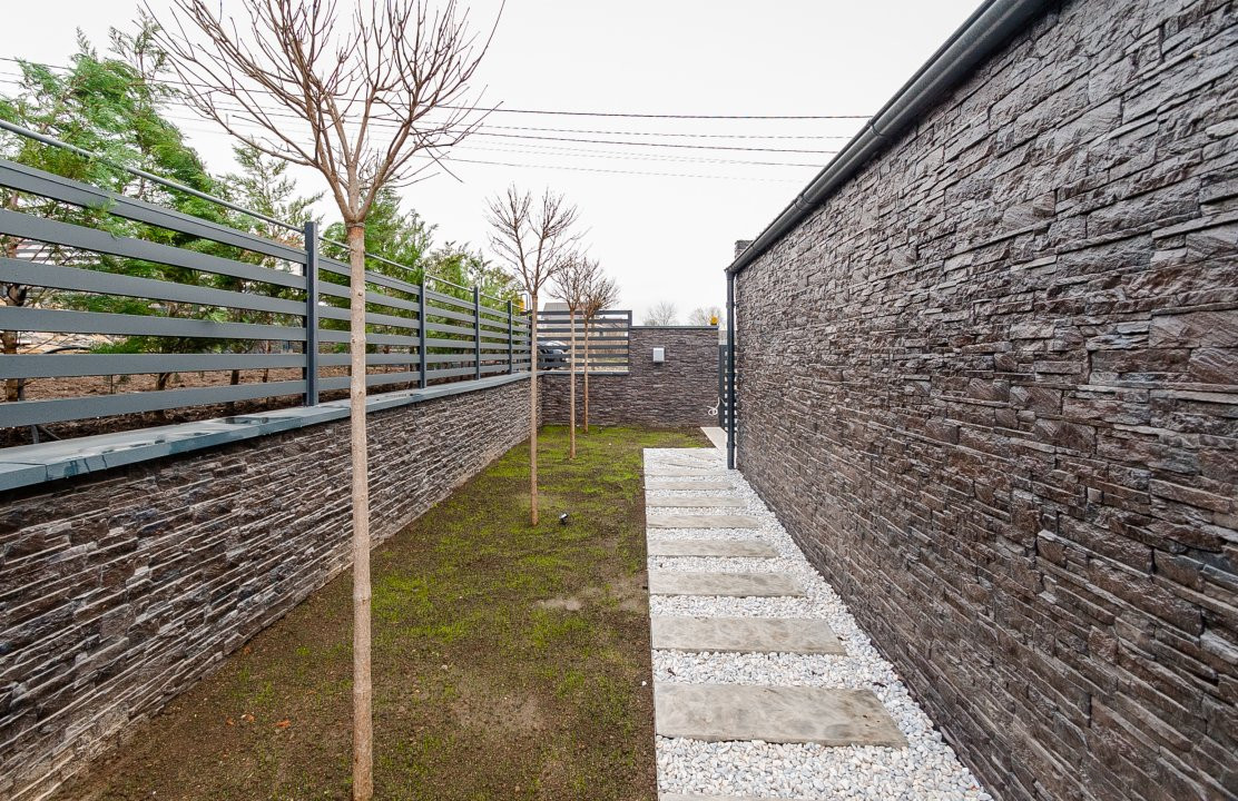 Curtea completează perfect atmosfera casei, fiind frumos amenajată, cu piscină de tip deschis, ideală pentru zilele calde, și o terasă spațioasă pentru relaxare sau seri în compania familiei și prietenilor.