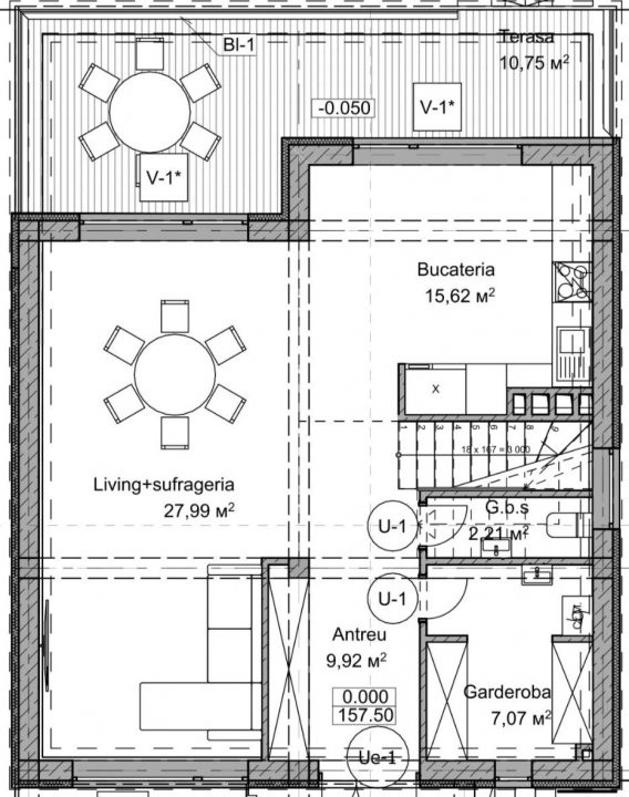 * Living cu bucătărie open space