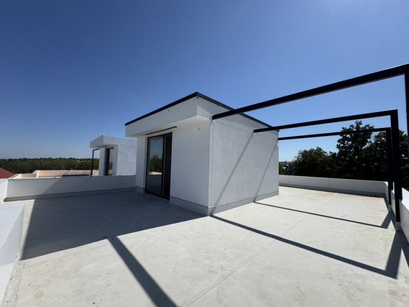 Casa dispune de 4 dormitoare spațioase, dressing, 3 băi, balcon și o terasă impresionantă pe acoperiș, perfectă pentru momente de relaxare.