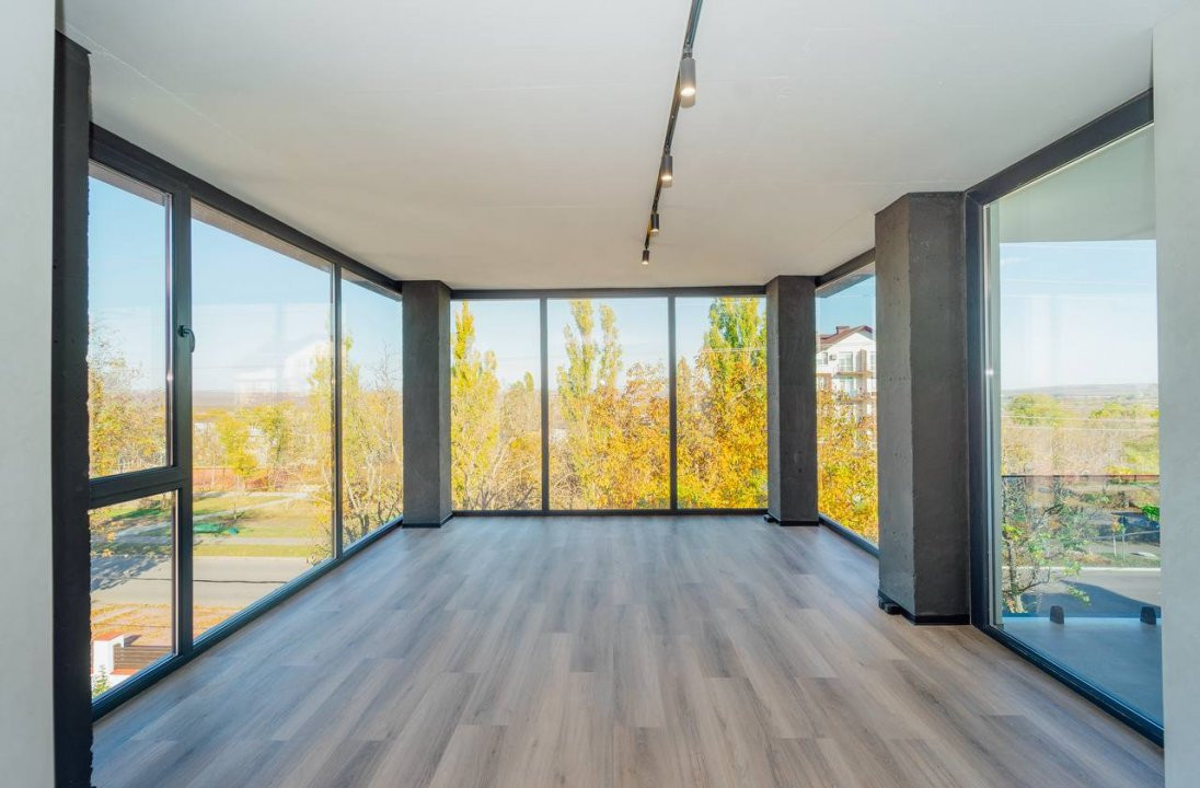 Nivelul 3: open space cu vedere panoramică, 2 dormitoare, bloc sanitar, 2 balcoane deschise, acces la terasa de pe acoperiș.