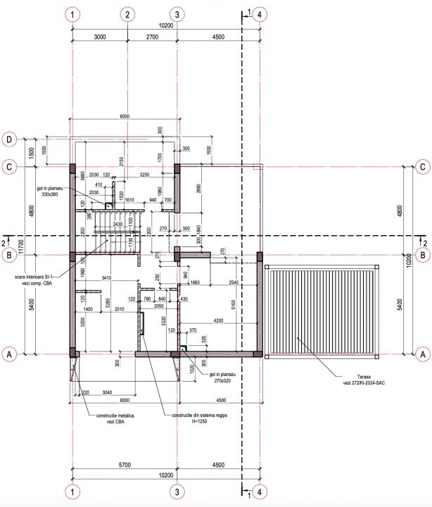- pereții exteriori din cărămidă roșie tip porothem;