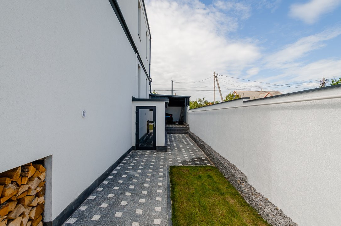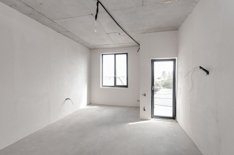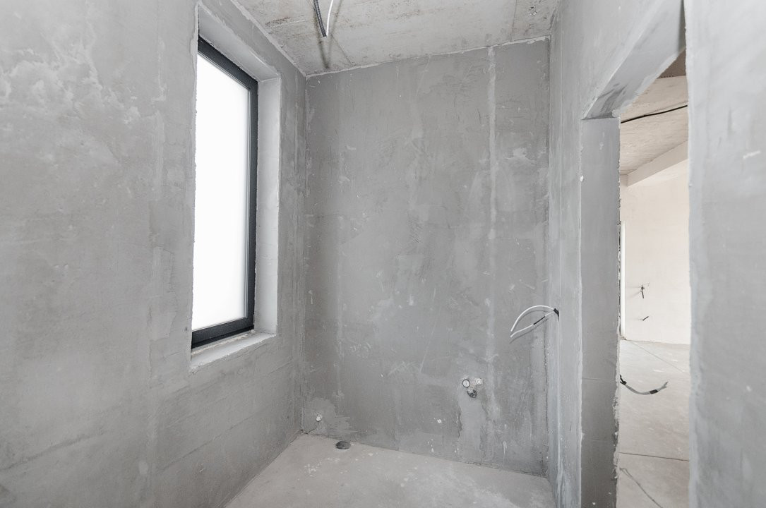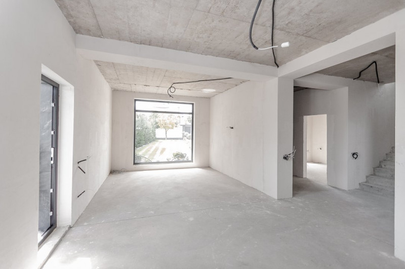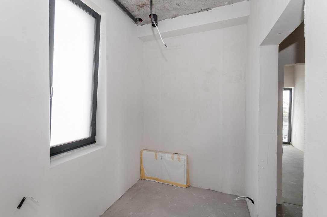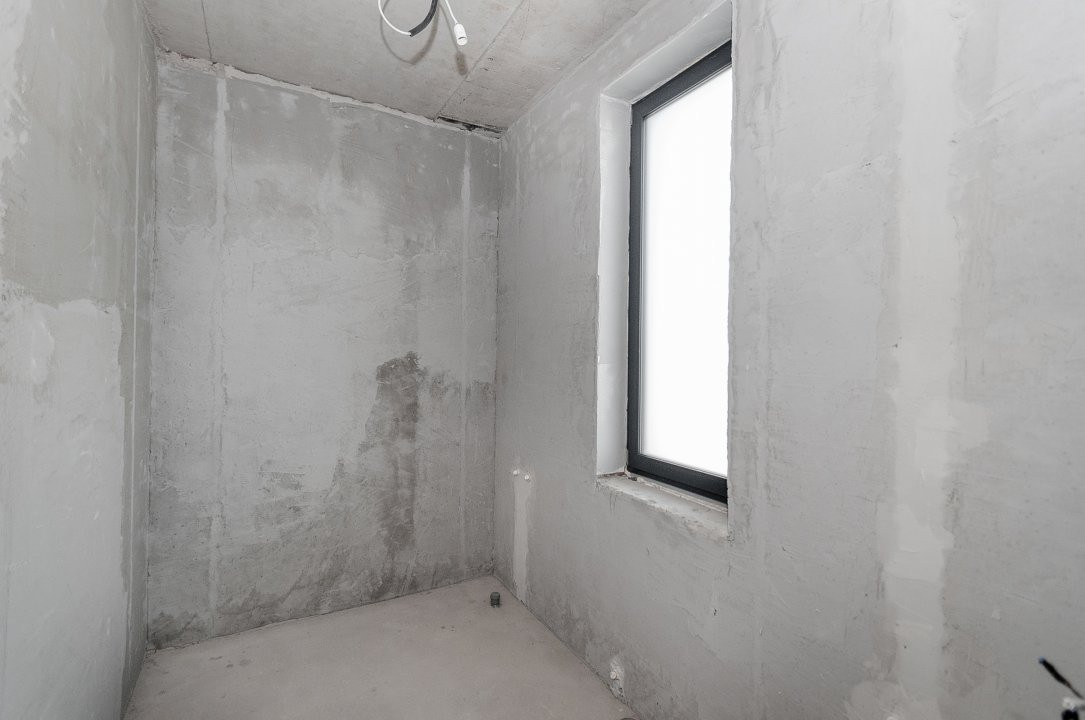 Imobilul este finisat la exterior, iar interiorul se află în varianta albă, ideală pentru a fi personalizată după preferințele noilor proprietari. Toate comunicațiile sunt deja conectate.