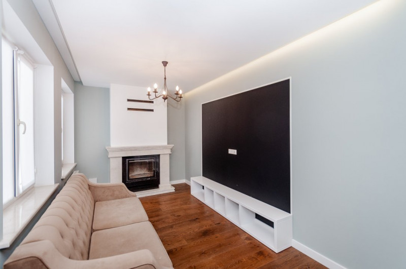 Șemineul este pe lemne cu capacitatea de 17 kw care încălzește peste 100 mp.