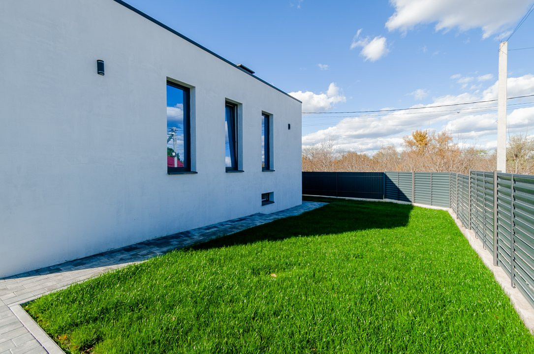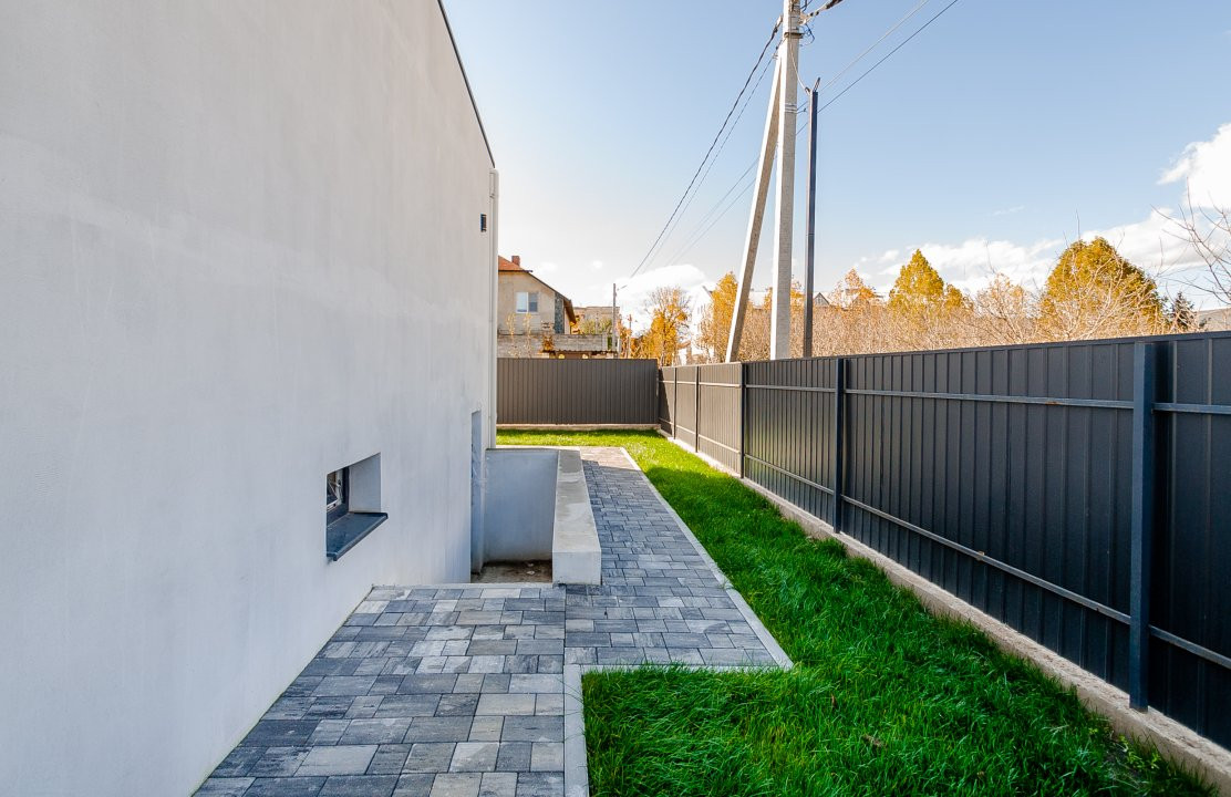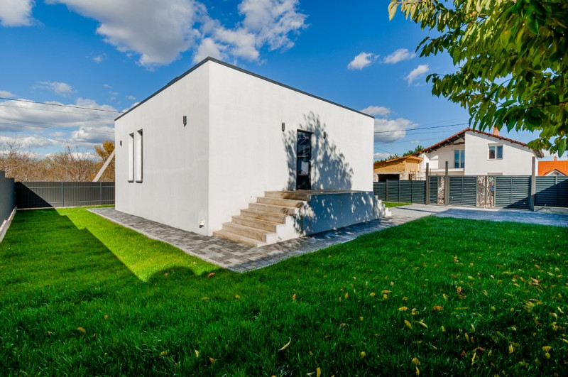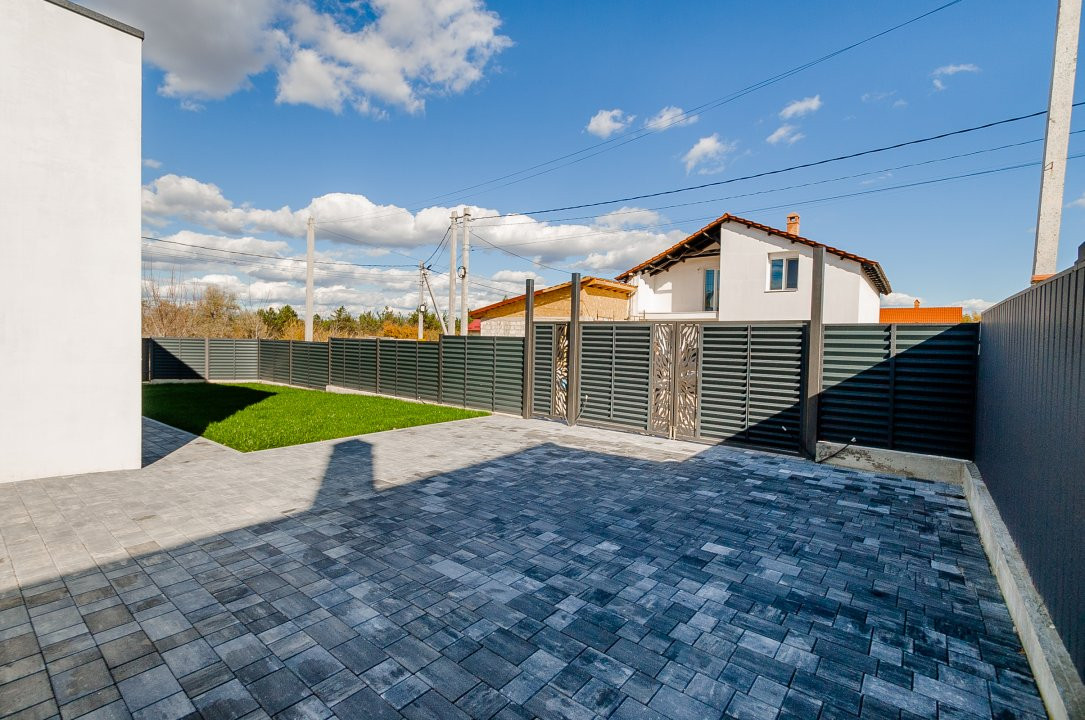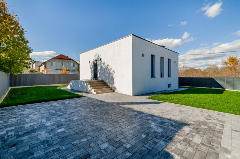 Se oferă spre vânzare o casă cu design contemporan, amplasată într-o zonă liniștită și verde, ideală pentru o viață confortabilă în afara aglomerației urbane.