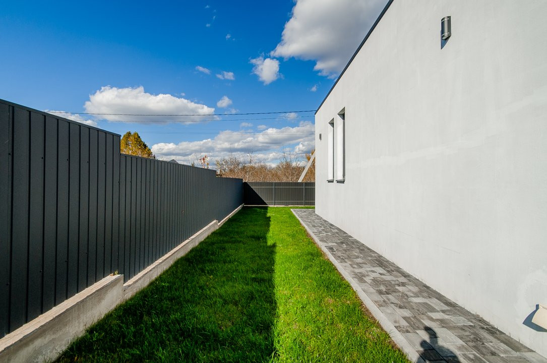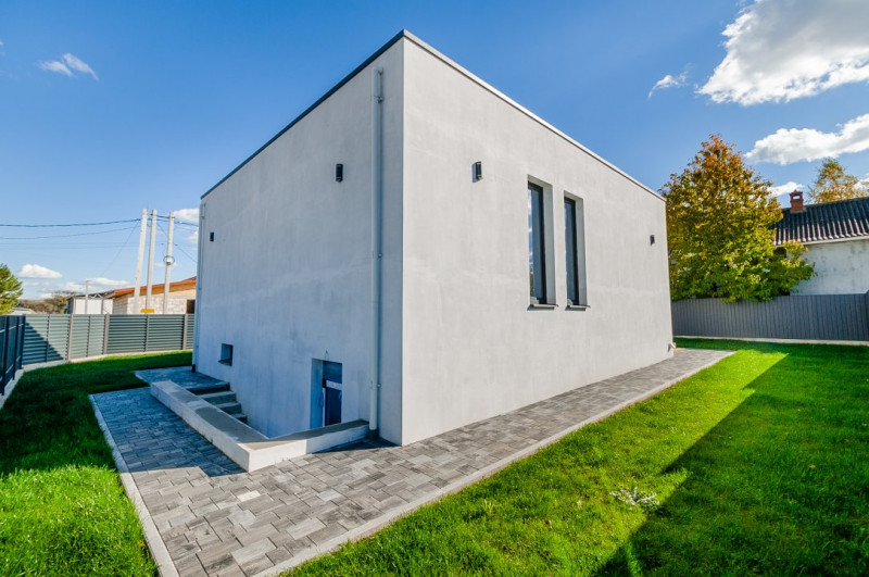 Casa are o suprafață totală de 110 mp și este construită pe un teren de 4 ari, fiind proiectată într-un stil hi-tech modern, cu accente minimaliste și finisaje de calitate superioară.