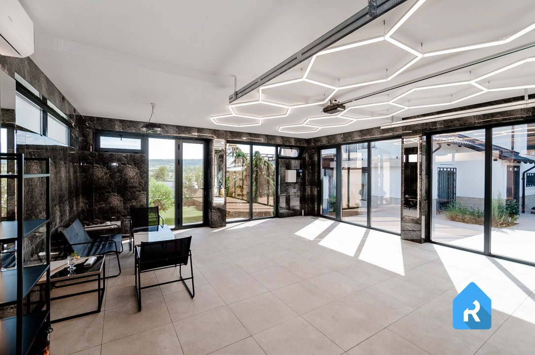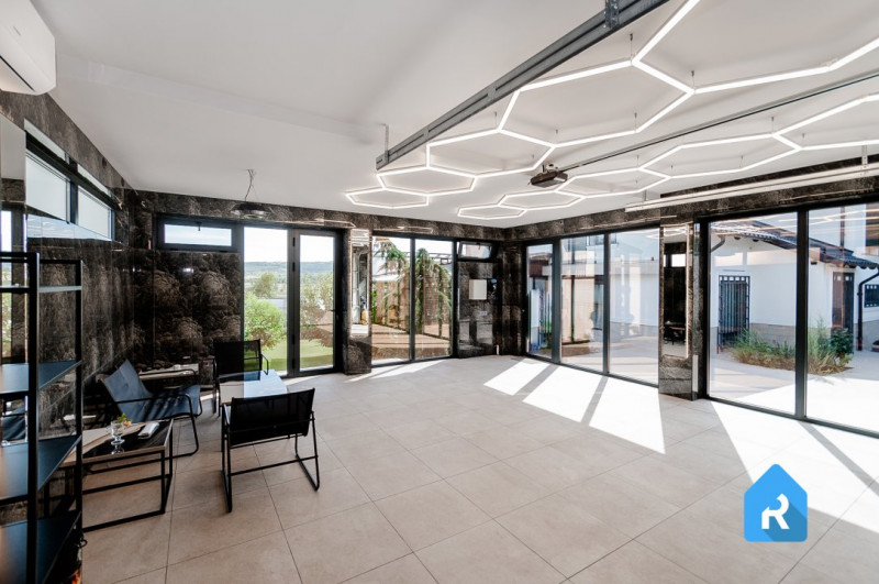 Este prevăzută cu încălzire prin pardoseală pe întreaga suprafață, 2 șeminee, 6 aparate de aer condiționat, rulouri electrice la toate ferestrele.
