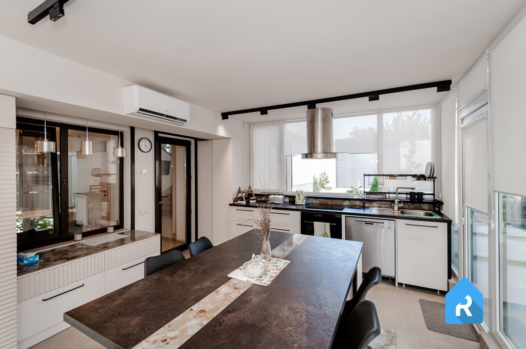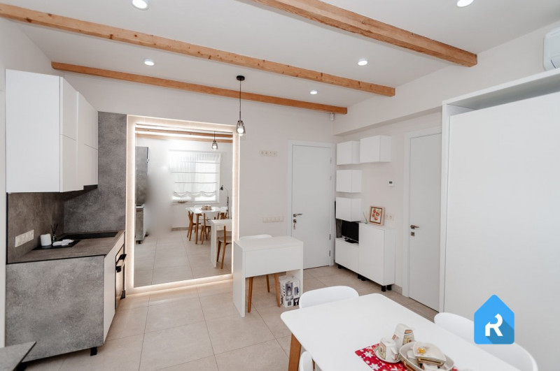 Casa este complet mobilată, dotată cu tehnică de calitate, iar mobila este fabricată la comandă.