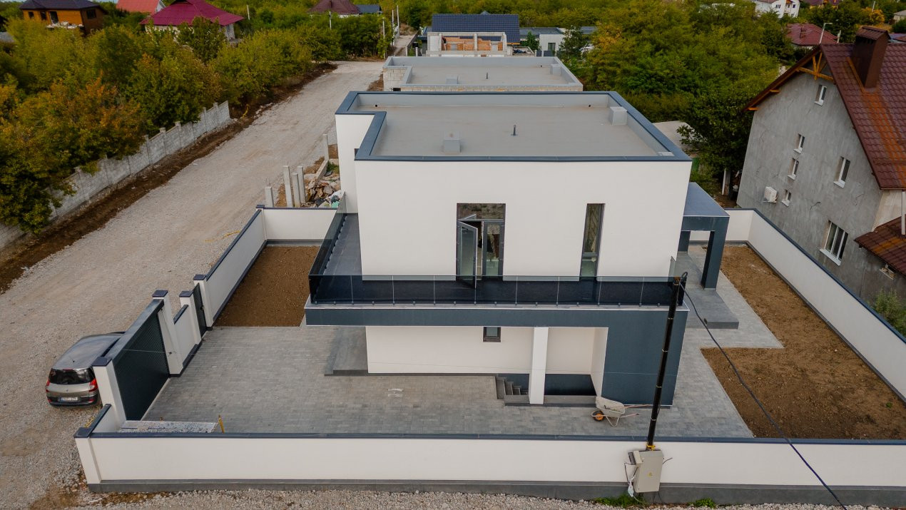 Casa este construită în variantă sură, oferind viitorului proprietar posibilitatea de a o finisa după propriul gust și stil.