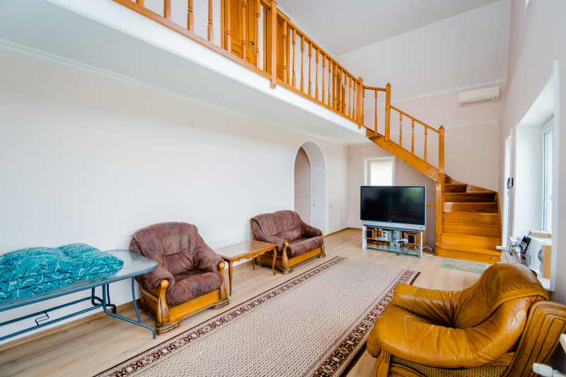 Dispune de beci, saună, garaj, terasă, piscină (15*5*3).