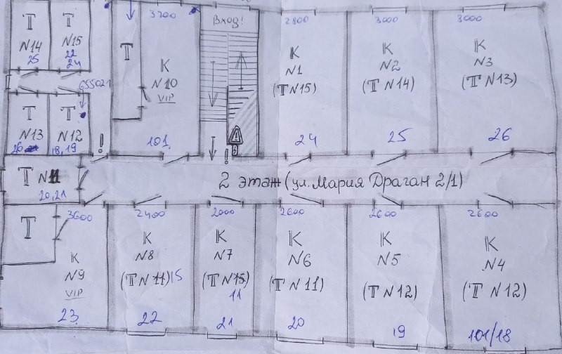 Spațiul este compartimentat în 10 camere separate, 2 camere sunt cu blocul sanitar propriu, pentru celelate 8 sunt 4 blocuri sanitare comune conform planimetriei din imagine.