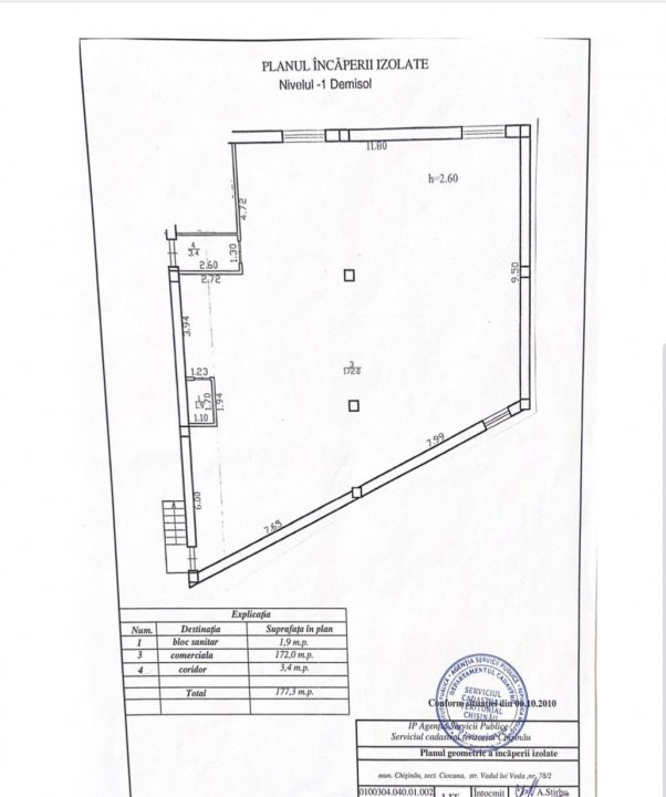 * Demisol: 177 mp – spațiu generos, potrivit pentru depozitare, producție ușoară, birouri secundare sau servicii complementare