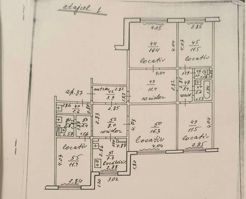 Compartimentat în: 5 dormitoare, bucătărie, 2 blocuri sanitare, antreu.
